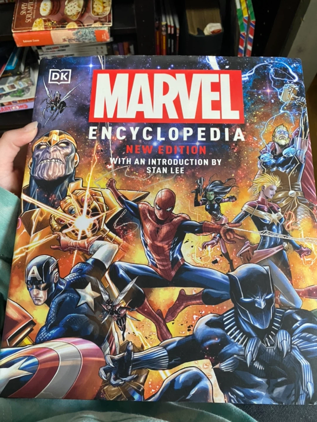 Lot of comic books perfect condition, the paper protective cover of the marvel encyclopedia has some bends from being on the shelf but aside from that perfect.