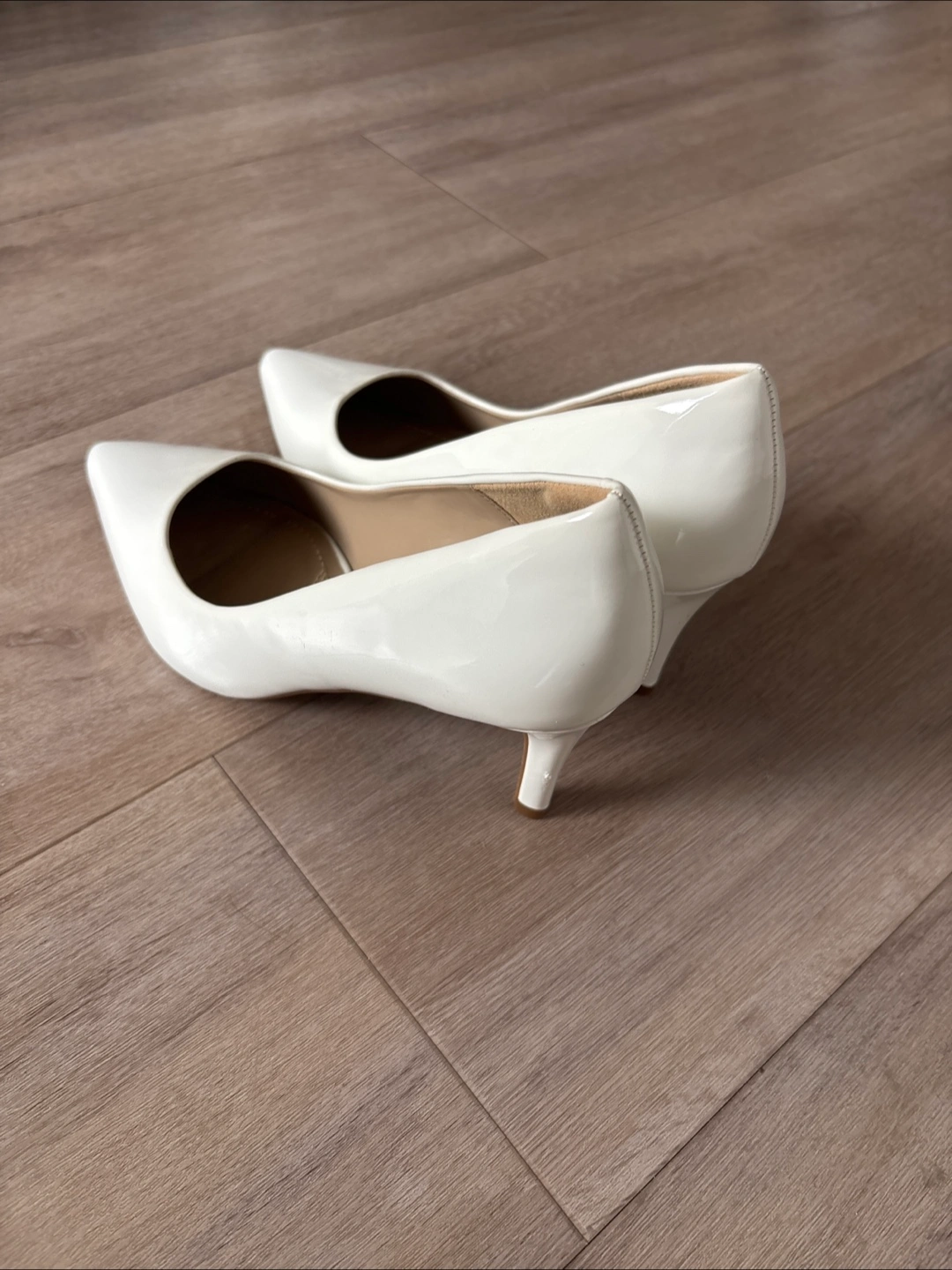 Selling a pair of Dream Pairs white heels in size 7. They're in great condition and ready for a new home! They have a minor scratch in the heels.