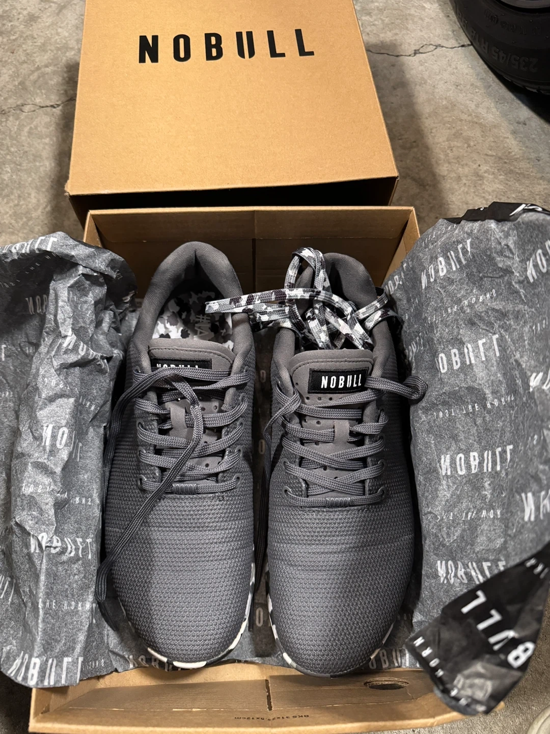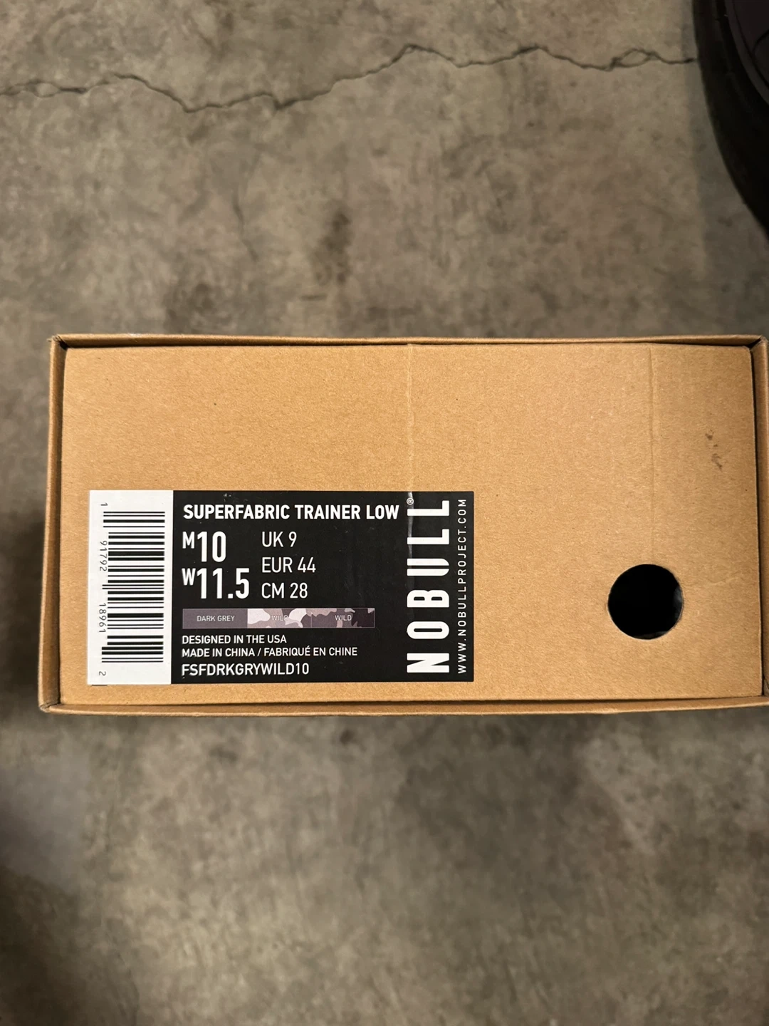 10Selling a pair of NOBULL SuperFabric Trainer Low in dark grey, size men's 10. These are in great condition and come with the original box. The box also says W11.5, EUR 44, and CM 28. Perfect for your next workout!