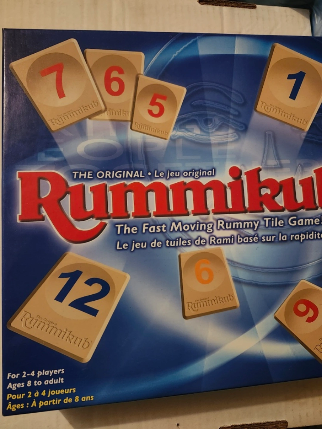 Fast-moving rummy tile game. For 2-4 players, ages 8+. Includes numbered tiles.