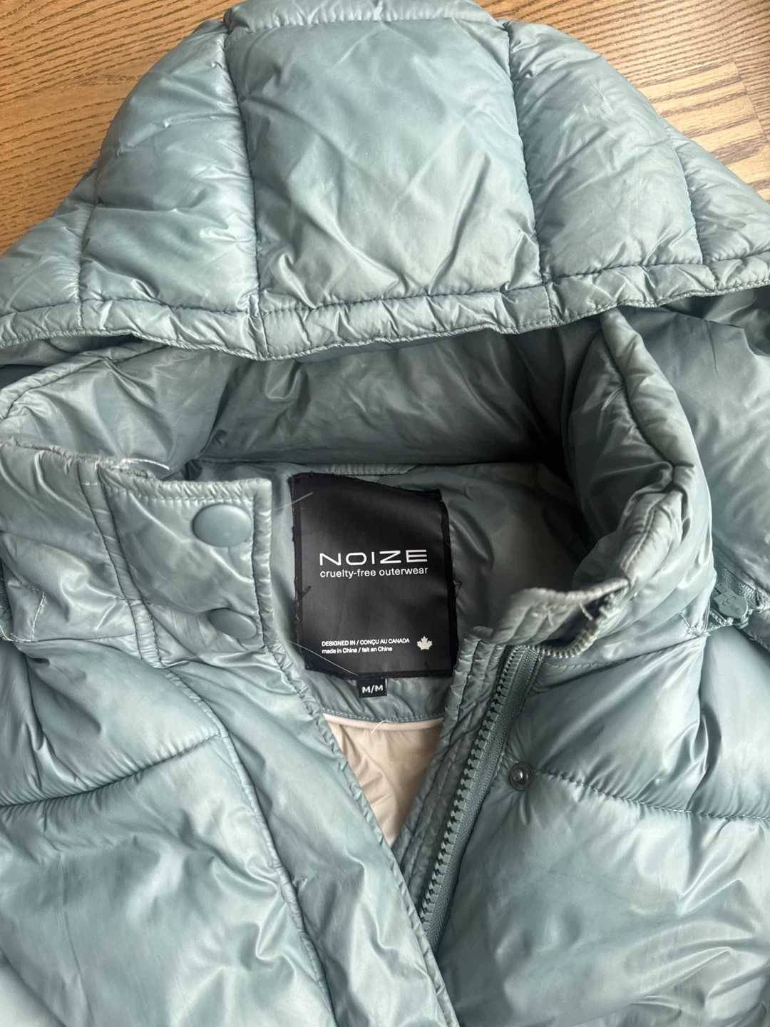 Selling a Noize puffer jacket in size M. It's in great condition and perfect for the colder weather! only the drawstrings are kind of falling apart (pictured). very warm and cozy with removable hood