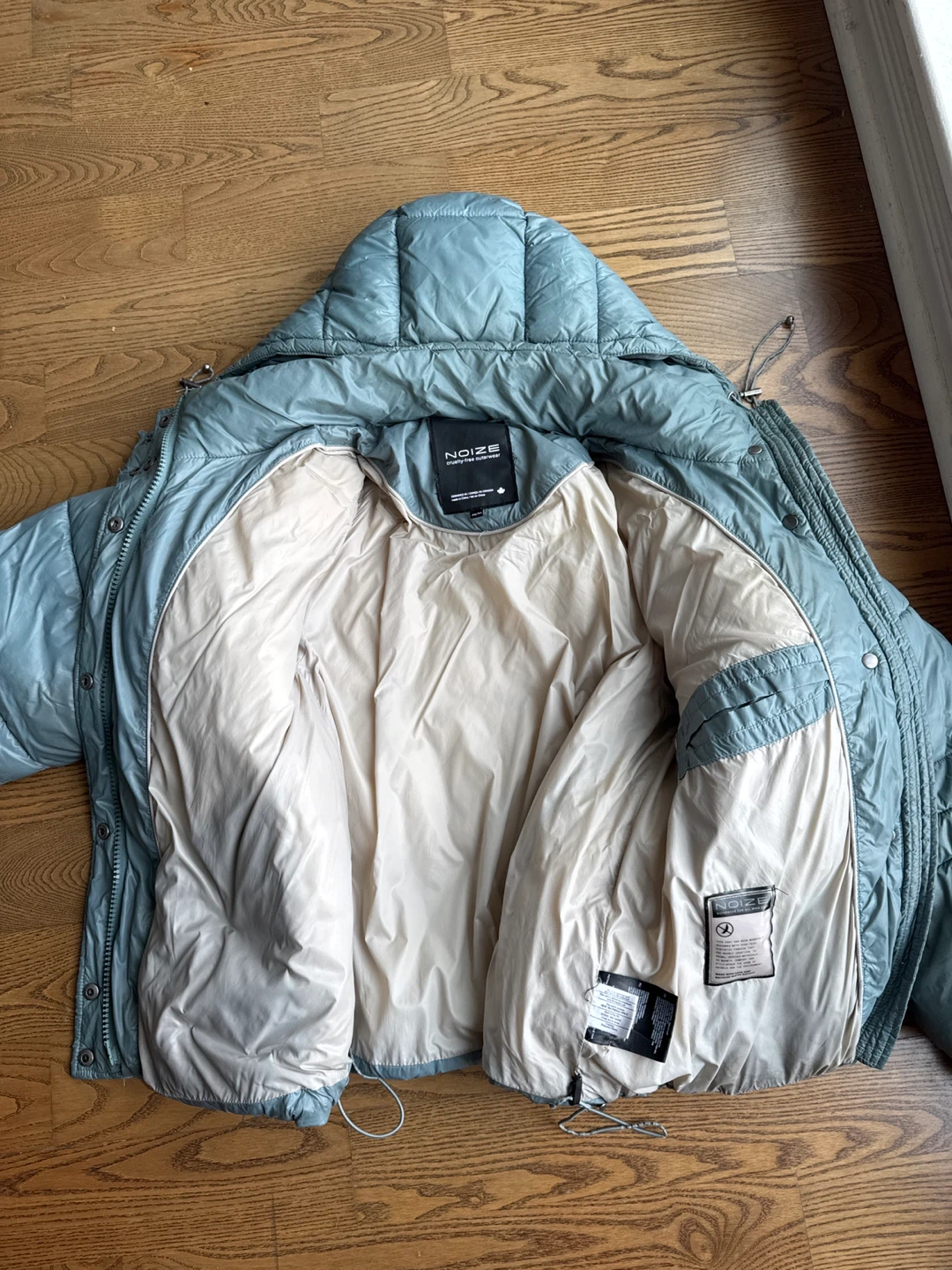 Selling a Noize puffer jacket in size M. It's in great condition and perfect for the colder weather! only the drawstrings are kind of falling apart (pictured). very warm and cozy with removable hood