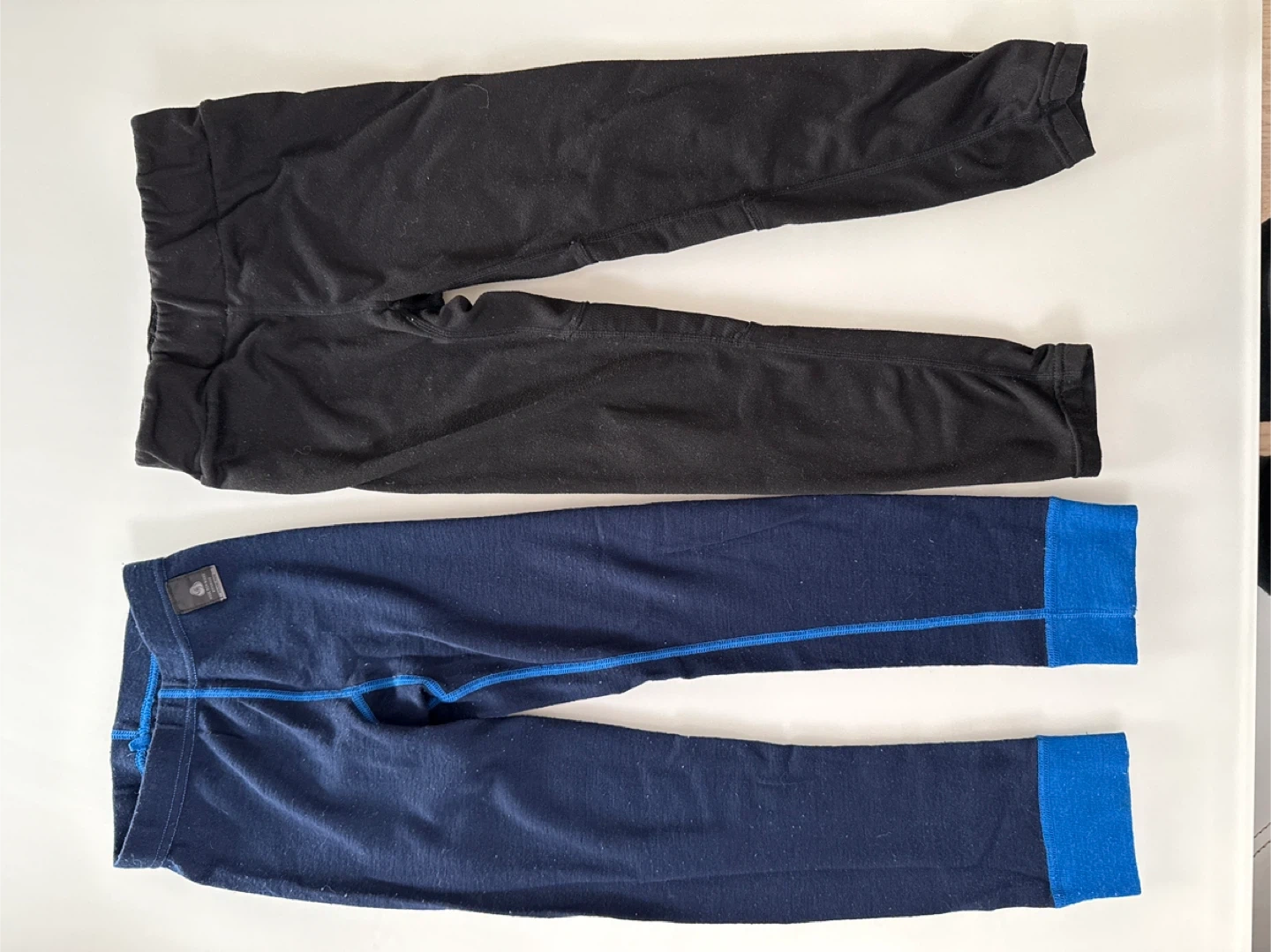 Selling 2 pair of kids' base layer pants! One is a dark blue wool merino wool and the other is black and fleece. Both are in good condition for keeping your little one warm during outdoor activities. $15 for both