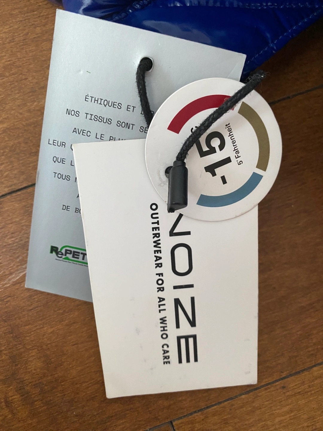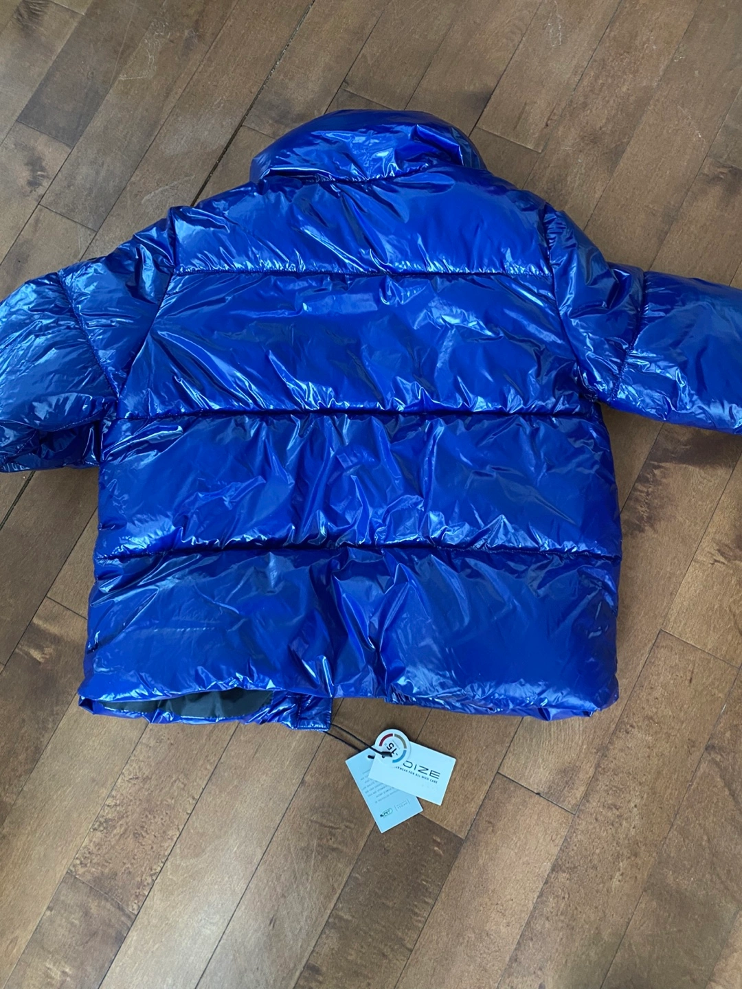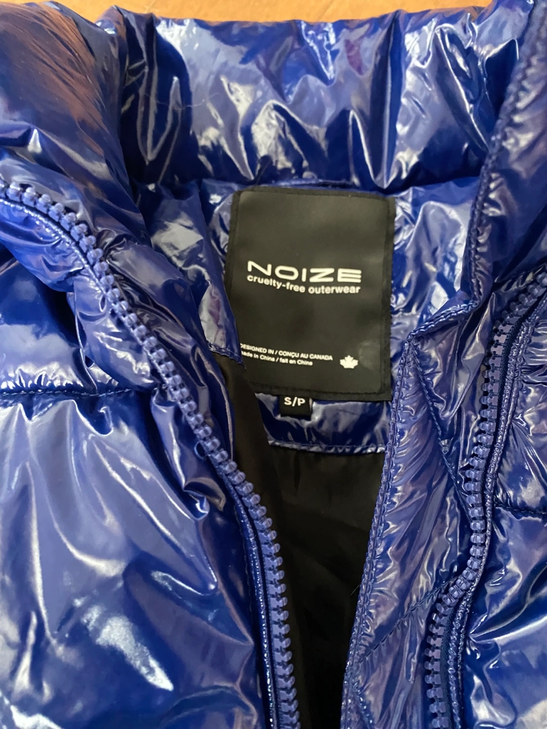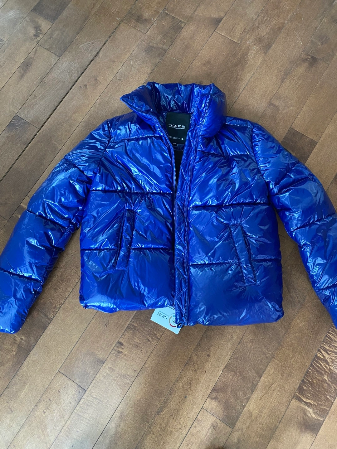 53Noize Shiny blue puffer jacket. Small size. Cruelty-free outerwear. Designed in Canada. Zipper closure. Brand new