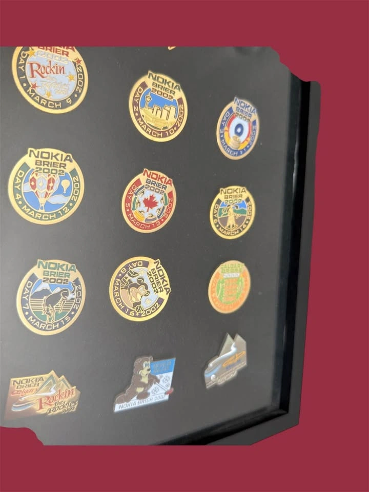Full pin set from the 2002 Calgary Curling Men’s Championship, sponsored by Nokia.