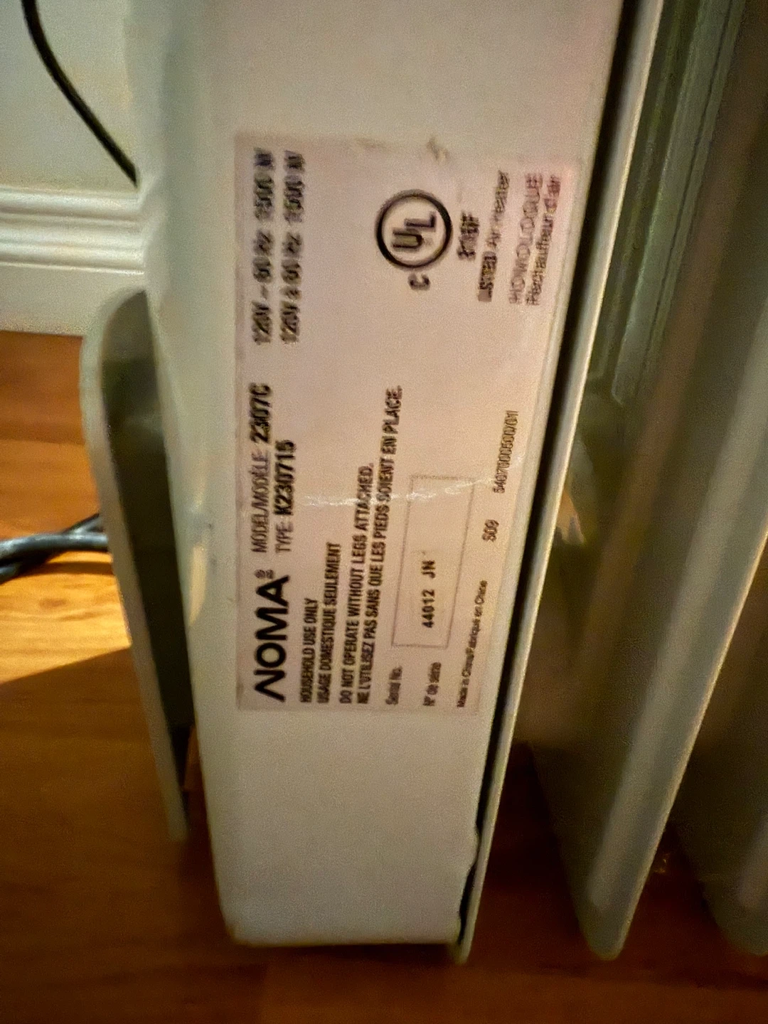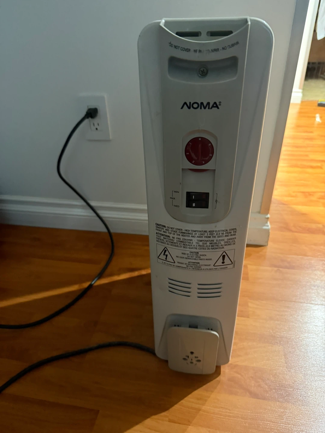370Selling a Noma oil-filled radiator heater. It's in great shape and ready to keep you warm this winter! It has multiple heat settings. Wheels fell off.
