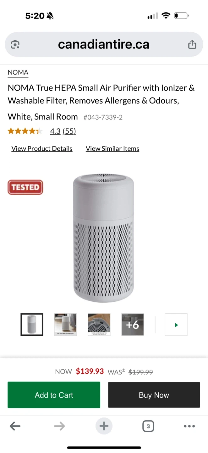 73Selling a NOMA True HEPA Small Air Purifier with Ionizer & Washable Filter. It's great for removing allergens and odours in a small room. Originally sold at Canadian Tire. Get it now! Needs new filter