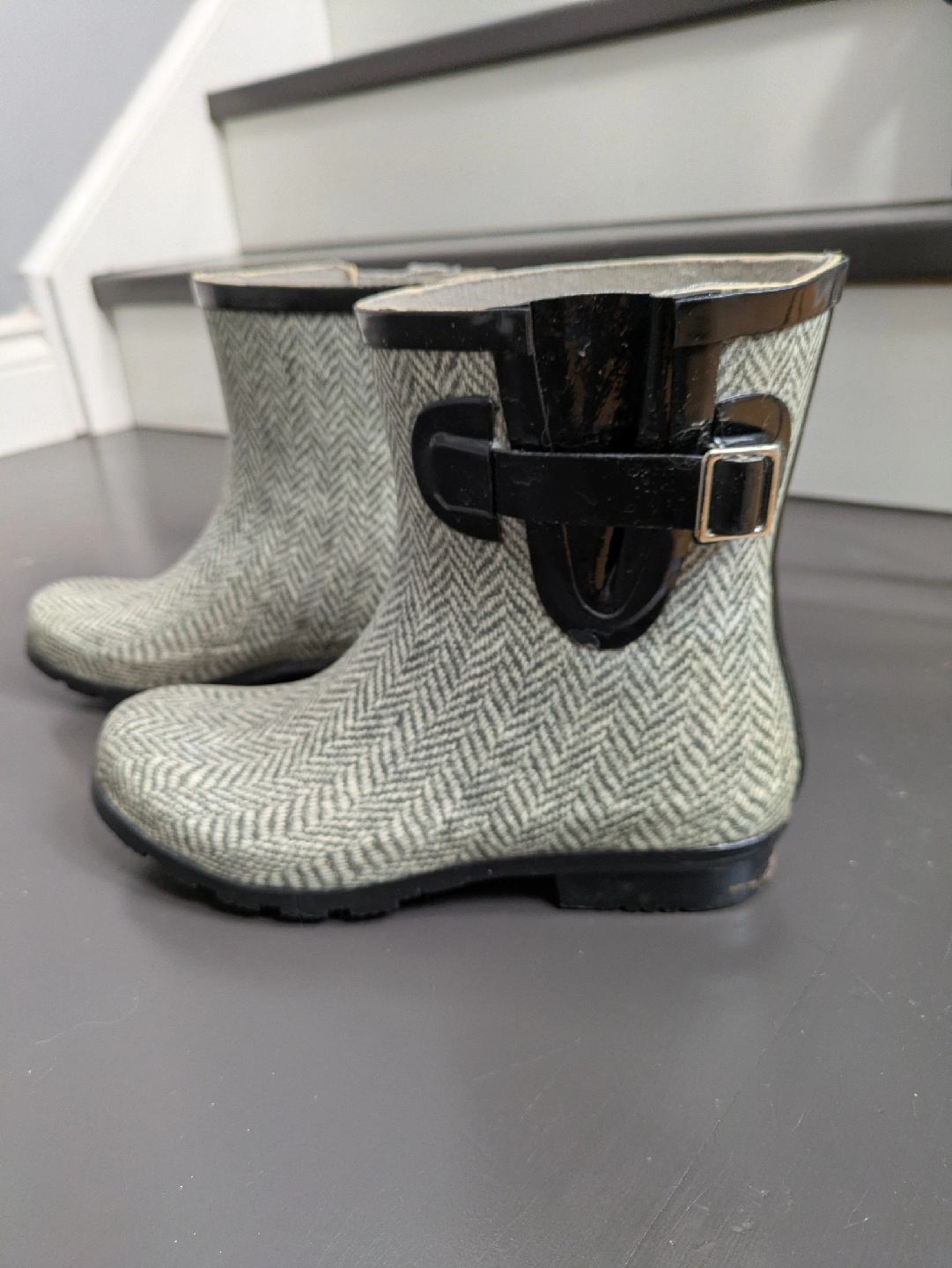 20Nomad rain boots feature a stylish herringbone pattern. Women's size 8 and in great condition.