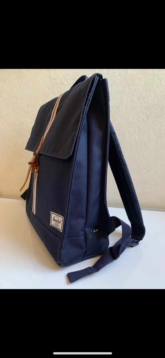 •Sleek Herschel City Offset Mid-Volume 14L Backpack in excellent like new condition in classic navy blue colour.