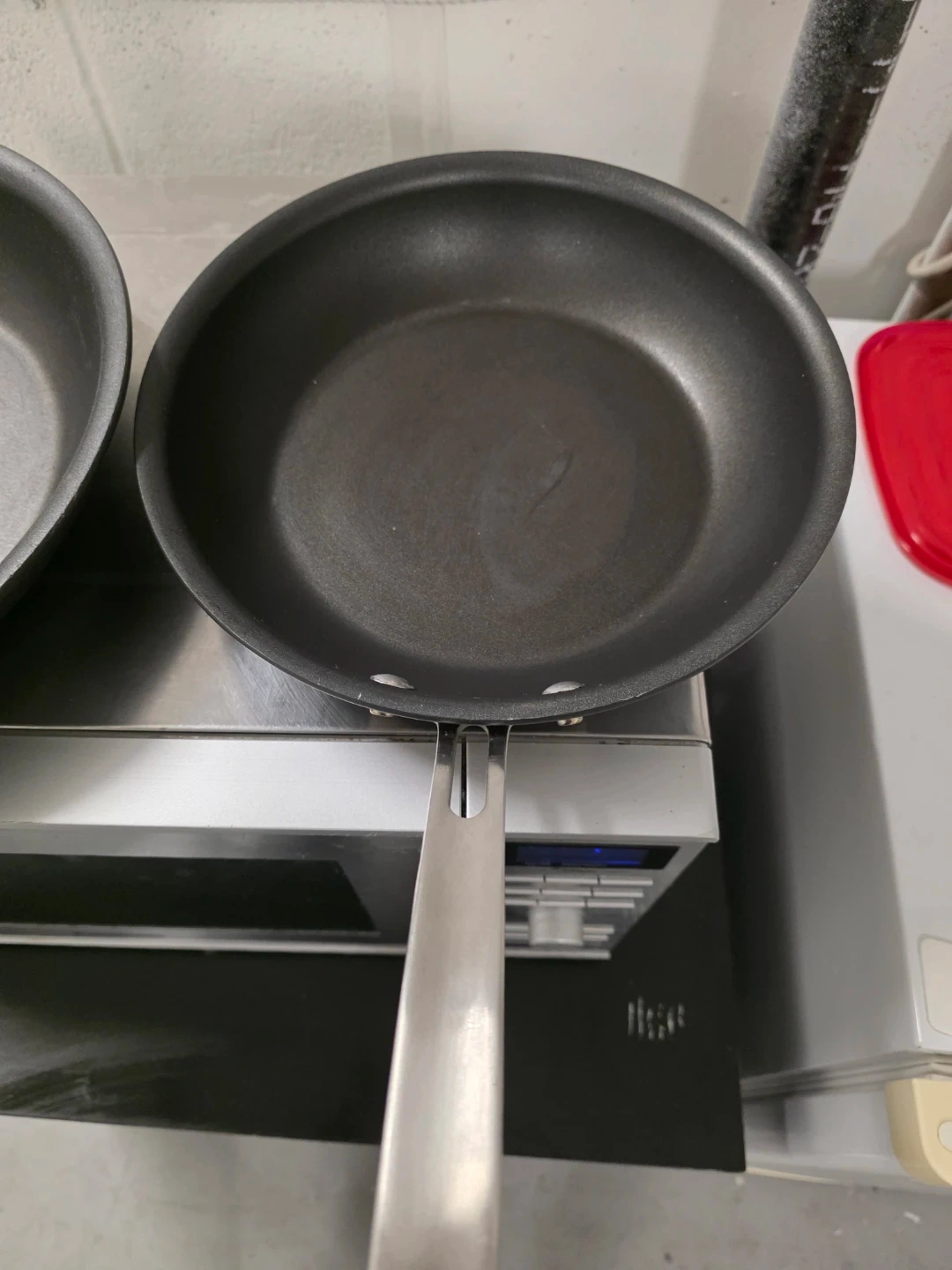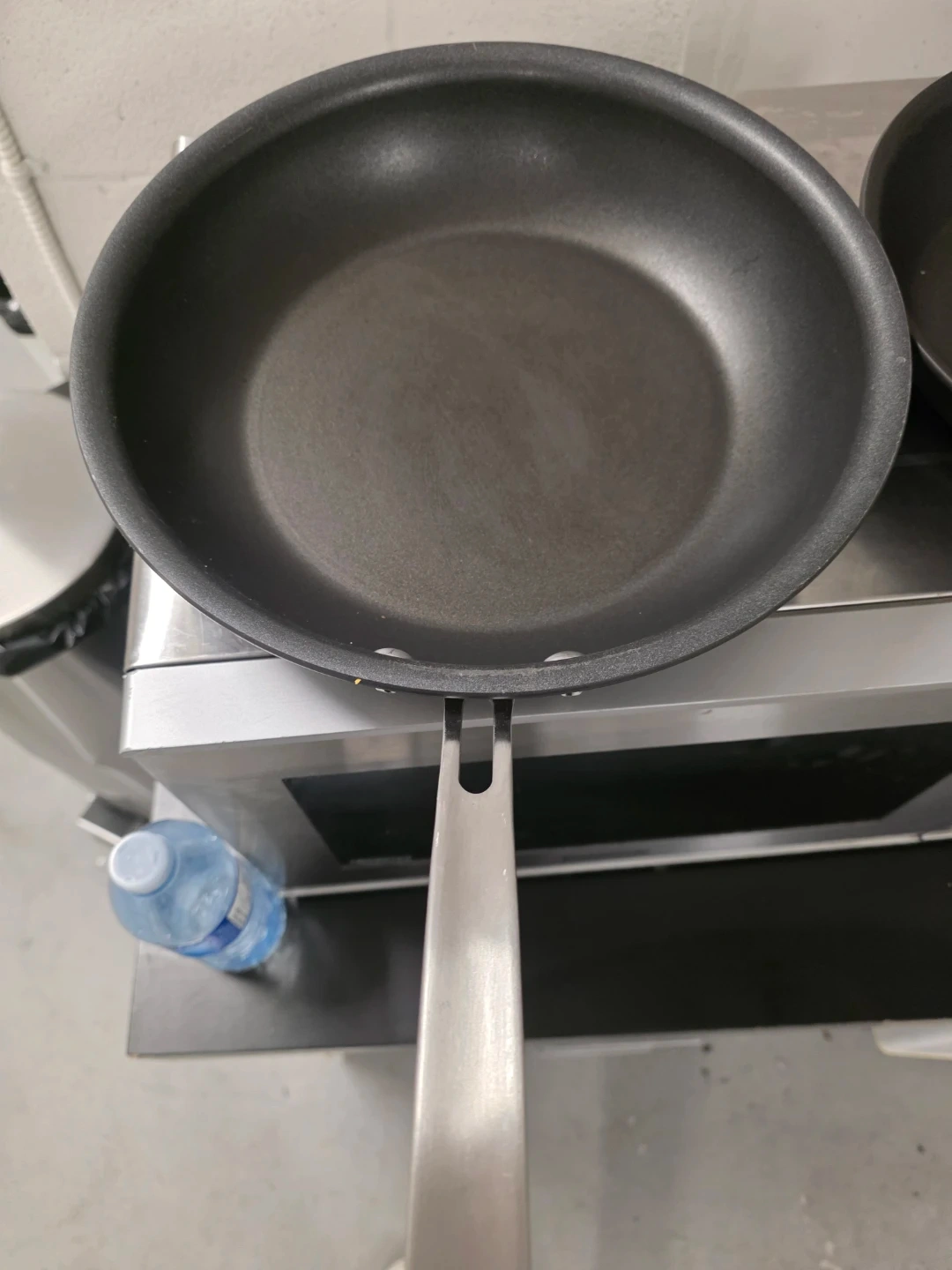 17Selling a non-stick frying pan with a silver handle. It's in great condition and ready for a new home!