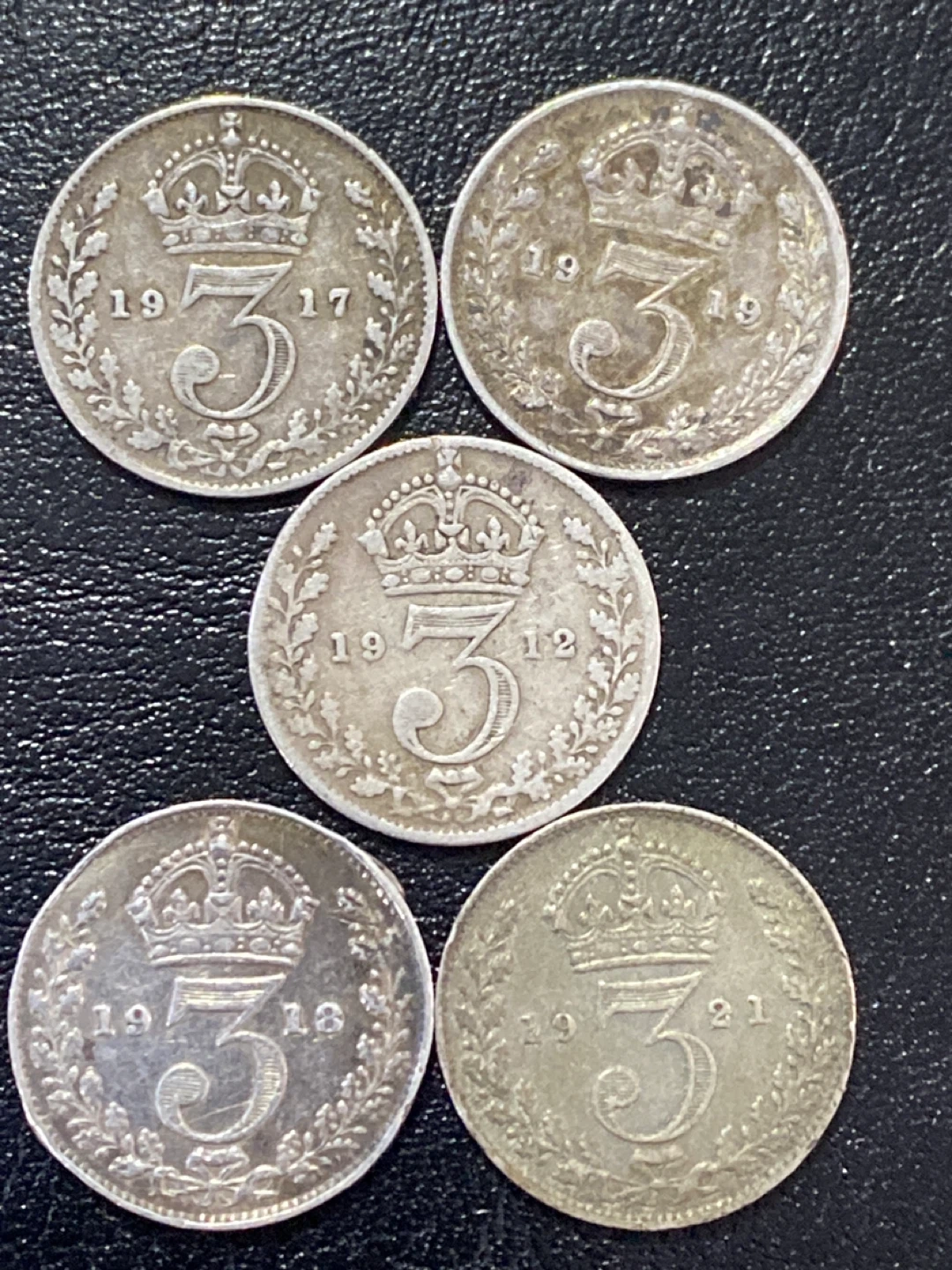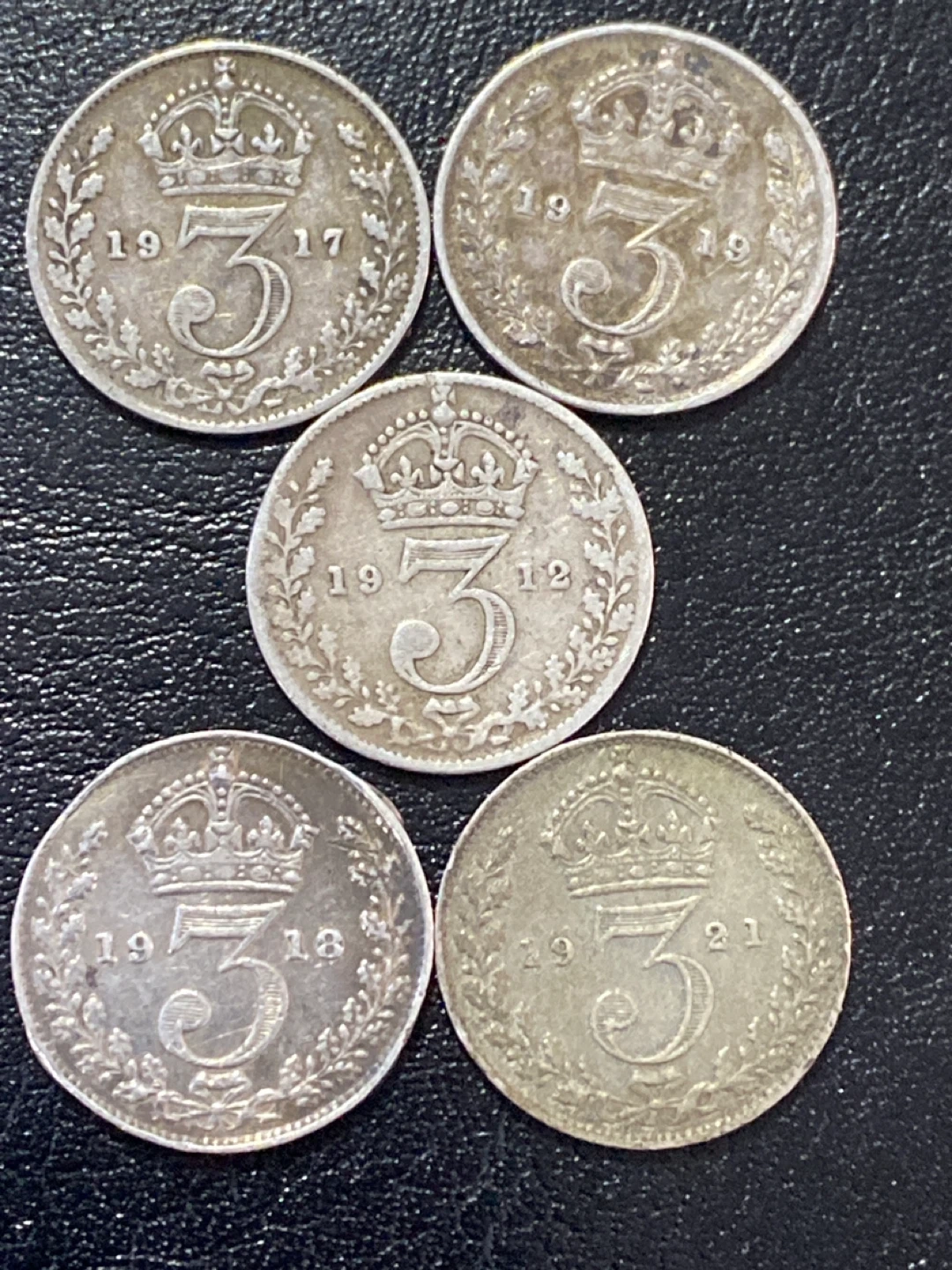 Buy & SellSet of 5 British Silver Threepence Coins (1912-1921)Set of 5 British Silver Threepence Coins (1912-1921)$110This is a collection of five British silver threepence coins. Dates range from 1912 to 1921. These coins feature King George V.WHERE TO MEETCheck LocationView MapSELLERverifieddiamondCorso Italia73566 reviews0 chats·1 favorites·17 viewsSEND CHAT TO SELLERHi diamond! I’m interested in your listing.Hi diamond! I’m interested in your listing.Get the Karrot app to chatSign In to chat