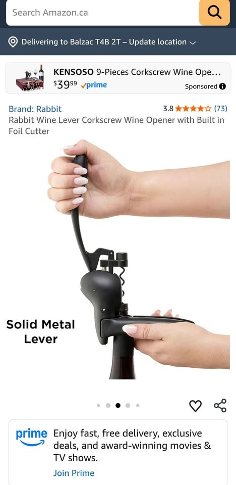 New rabbit wine opener, never used! It has a lever corkscrew and foil cutter, so you can ditch those broken corks. Solid metal lever, easy peasy to use. Measures 6.3 inches tall and 7.76 inches wide. Great for opening wine bottles hassle free! Sells on Amazon for $61.