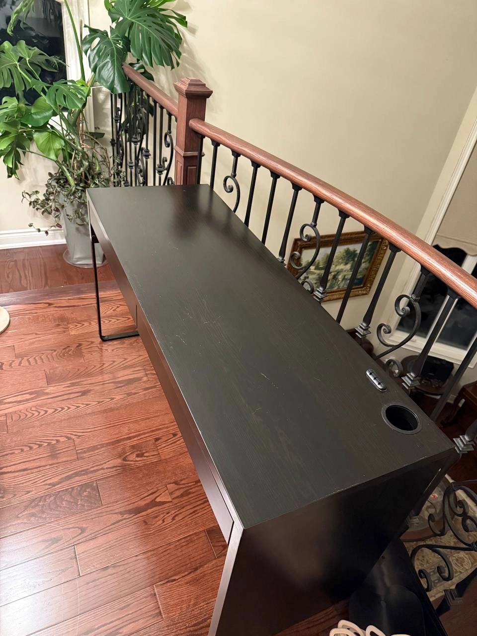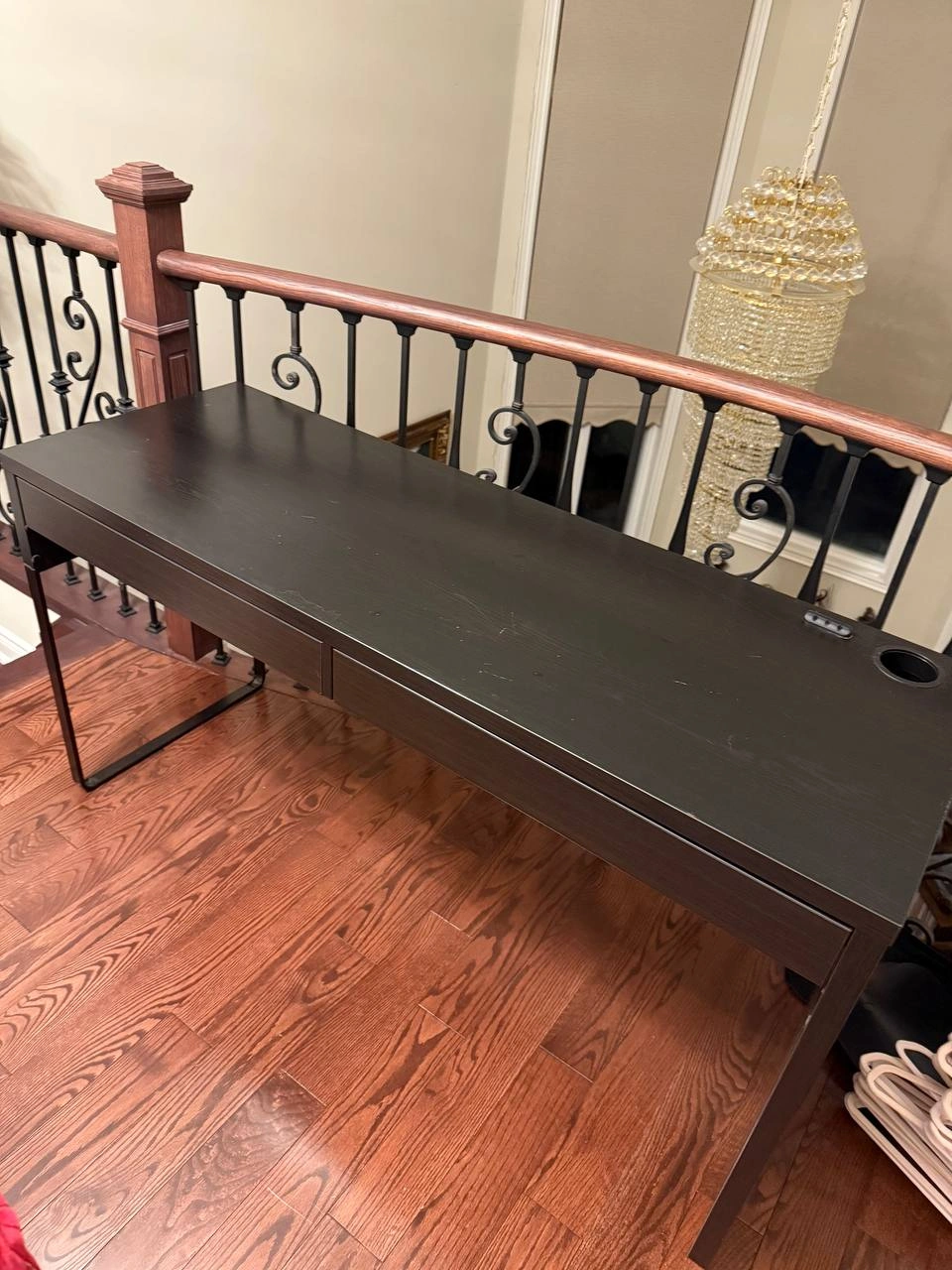 Dark brown desk. Two drawers. Cup holder. CA$70 • Long Desk with two drawers - Espresso Colour 56” L x 20” W x 29 1/2” H