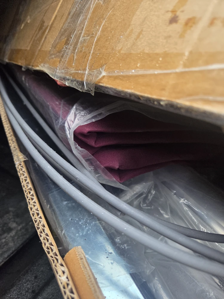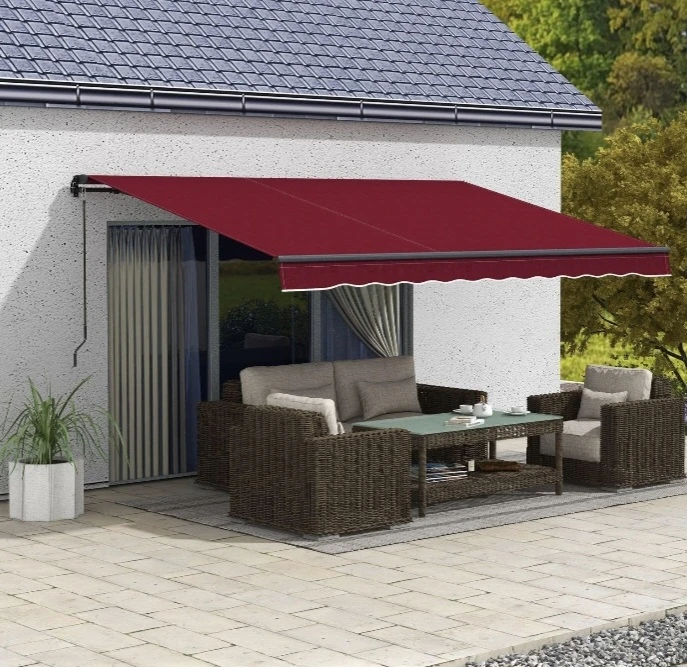 Selling a retractable patio awning in burgundy. It's 155.9 inches wide and 118.1 inches long. Perfect for creating some shade on your patio or deck!