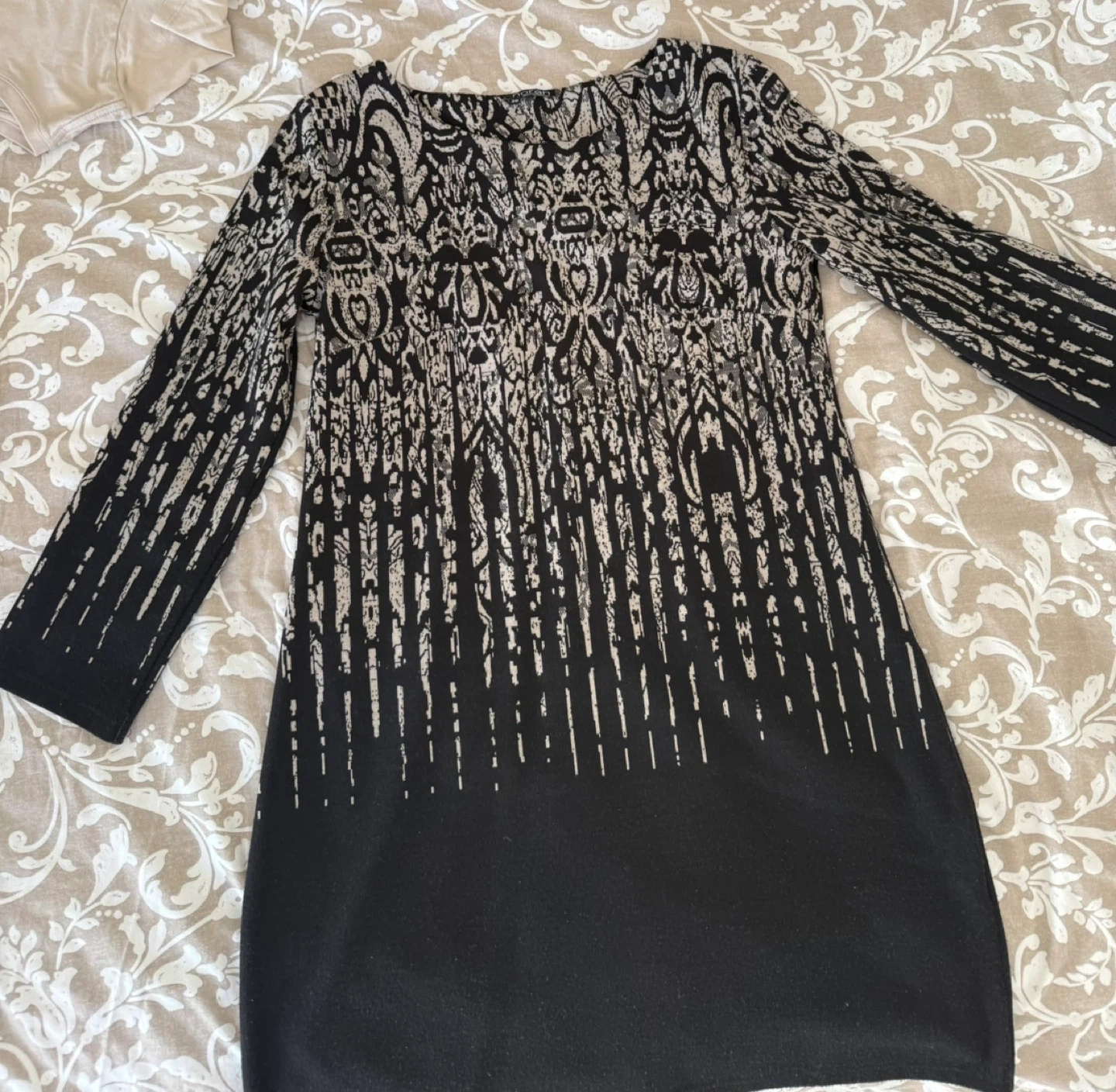 10This is a lovely Norah dress in size 38! It features a unique black and beige pattern. It's in great condition and ready for a new home