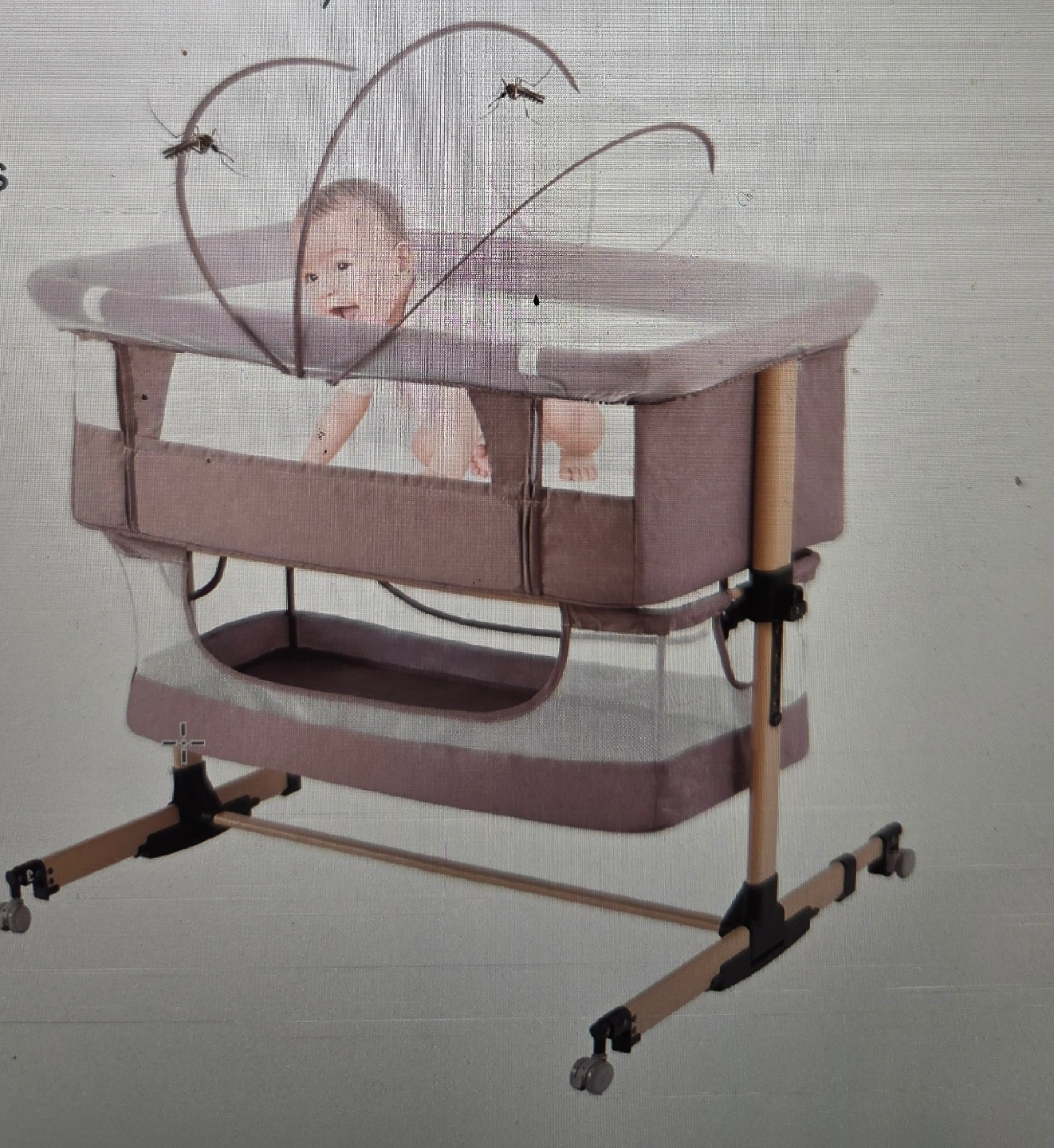15Never used Nordmiex 3 in 1 Adjustable Portable Crib, Bassinet including mattress and mosquito net for Infants. Colour: Blush pink It's in great condition and ready for a new little one. Perfect for keeping your baby safe and sound!