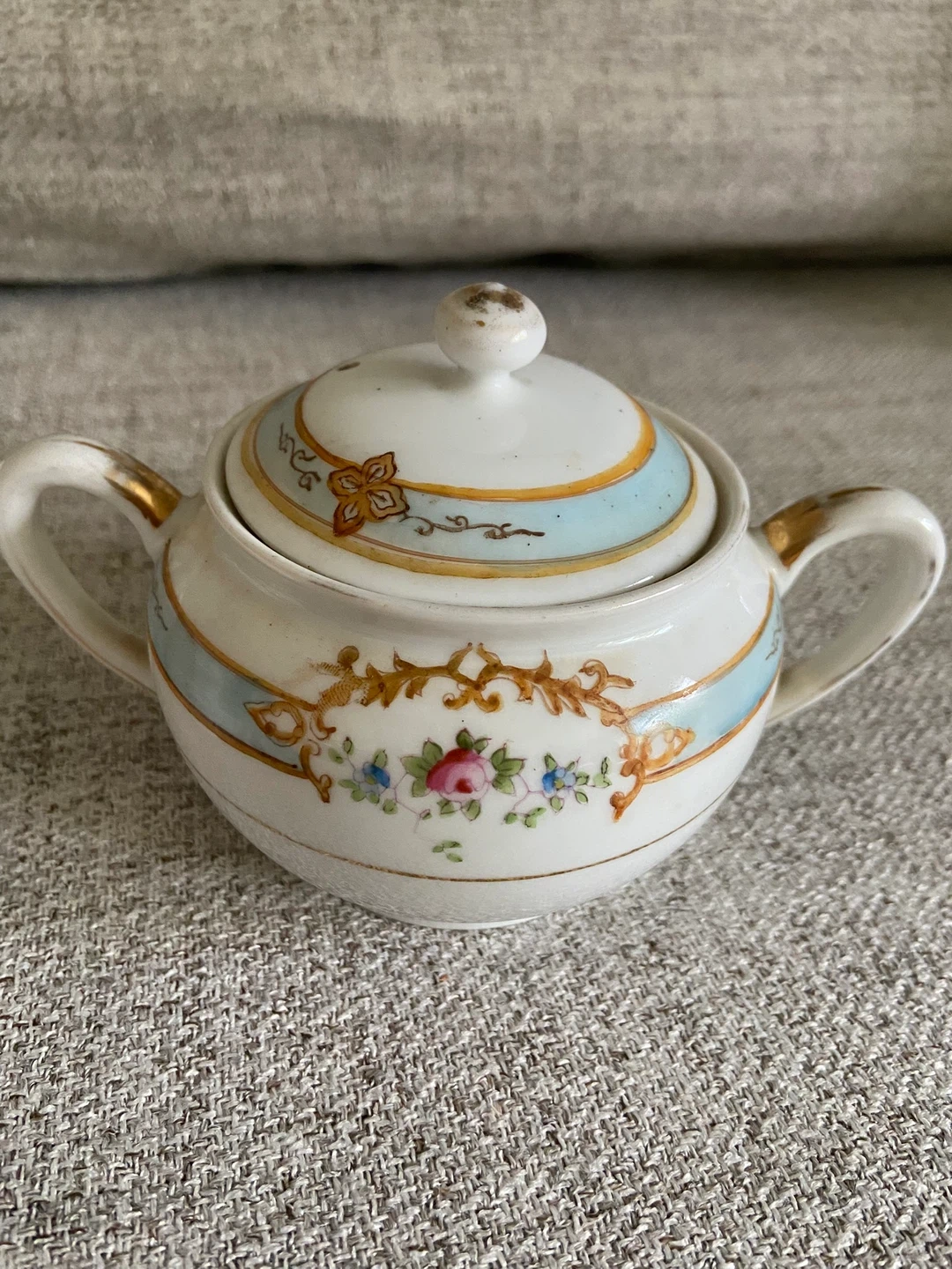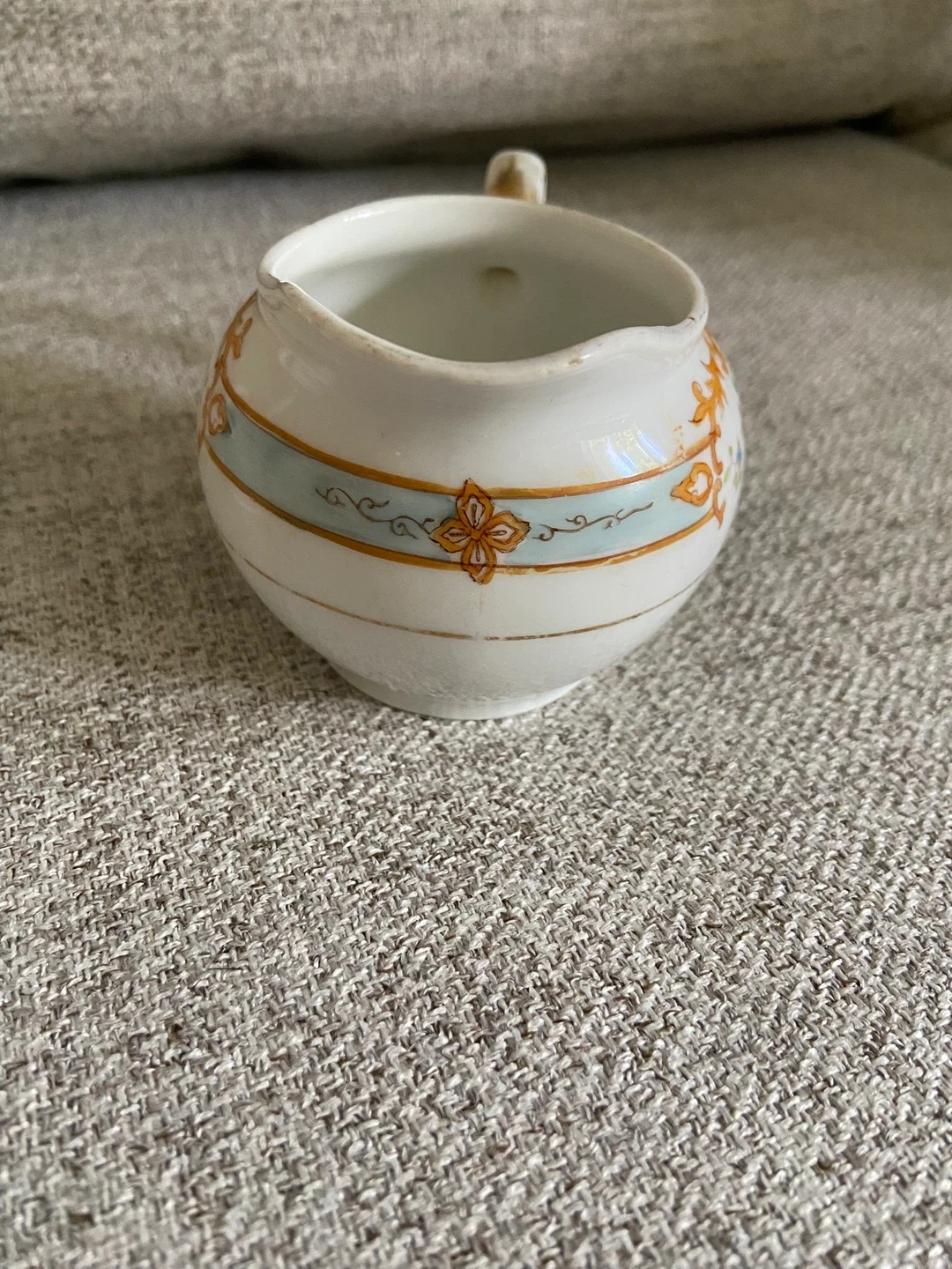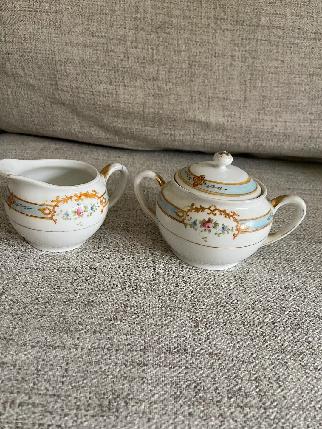 10Selling a lovely Noritake creamer and sugar bowl set! The set is decorated with delicate floral patterns and gold trim. It's in great condition and would be a beautiful addition to any table setting or collection No chips