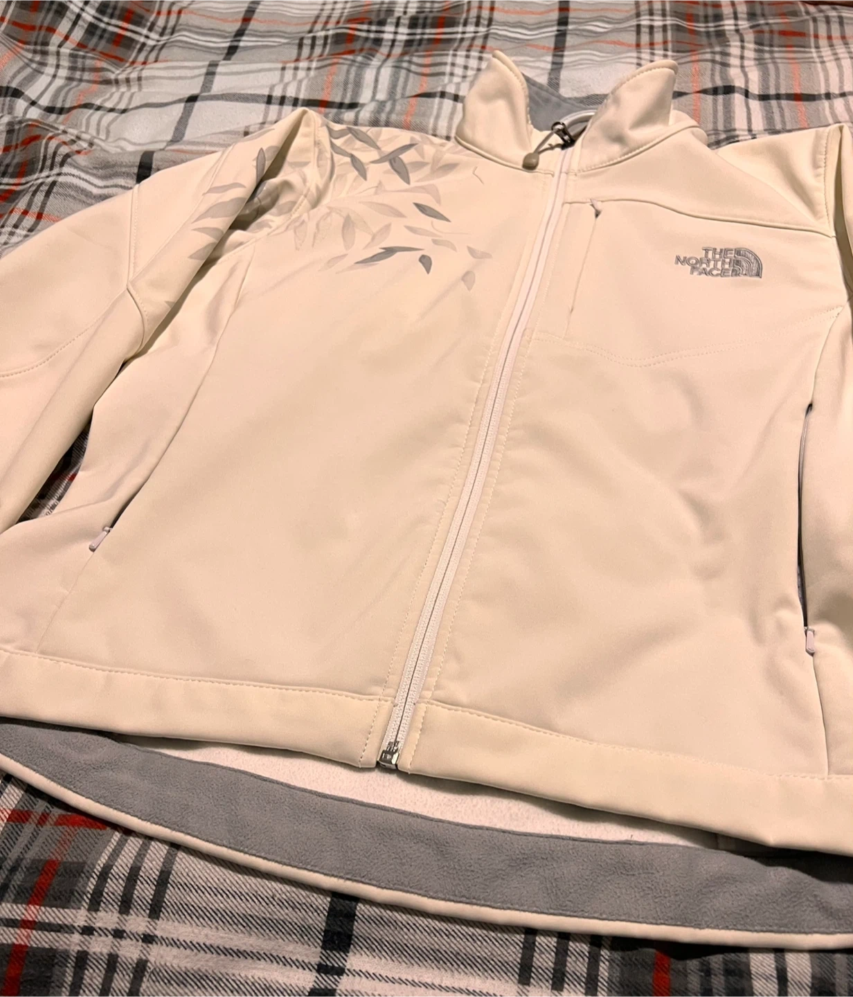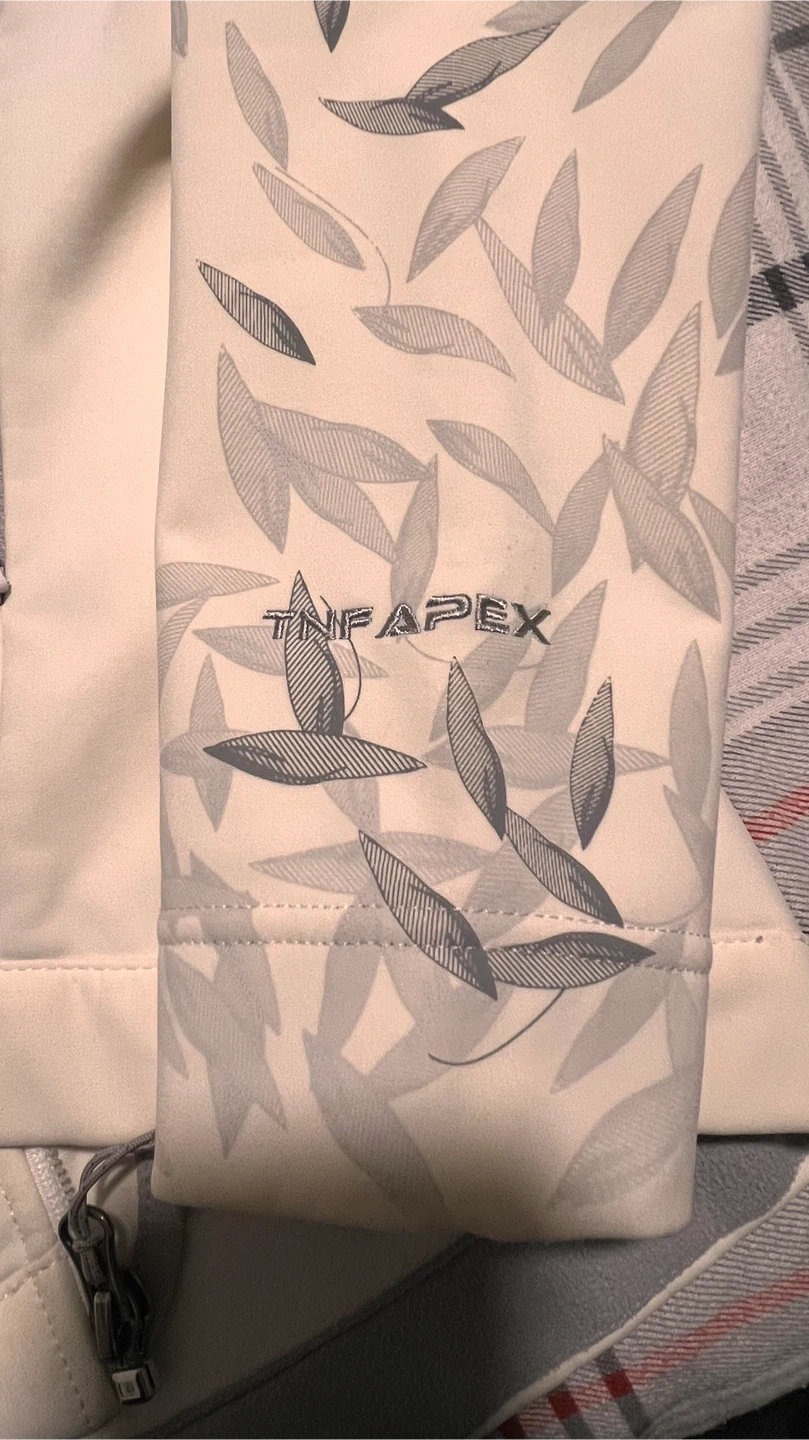 28Soft shell jacket Off-white colour with leaf design Apex Bionic Cash only Pick up, meet up, drop-off (local) Near 128 Street and 64 Avenue