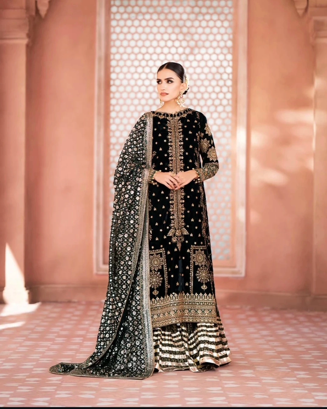 Black & Gold Embroidered Velvet Pakistani Suit