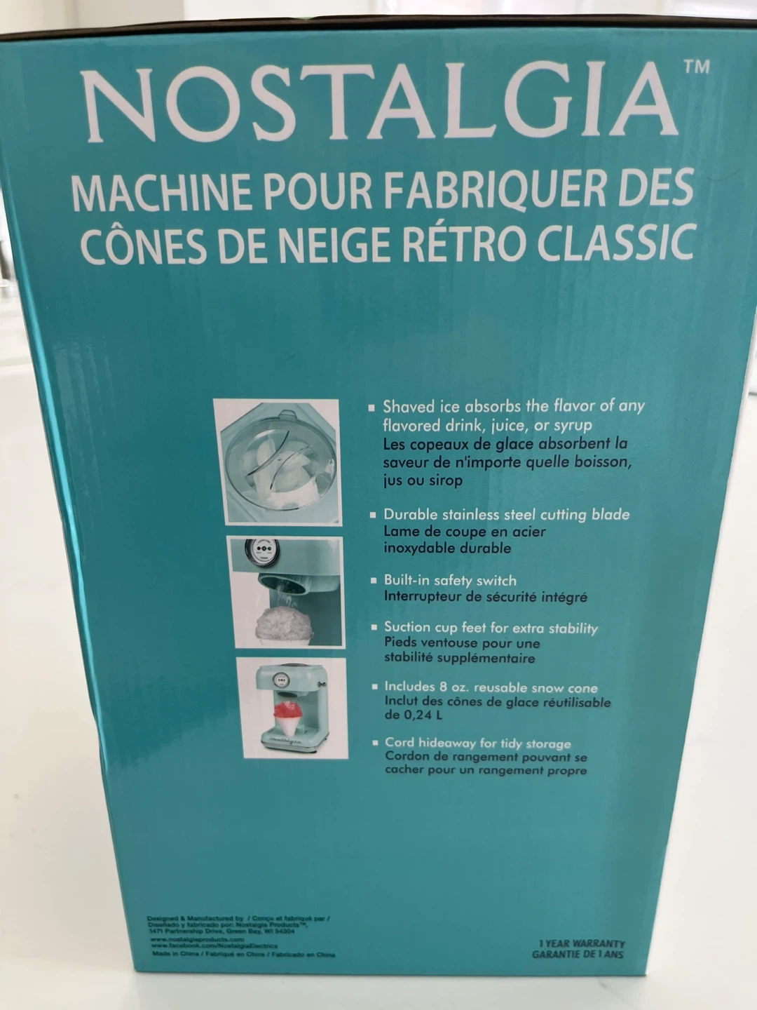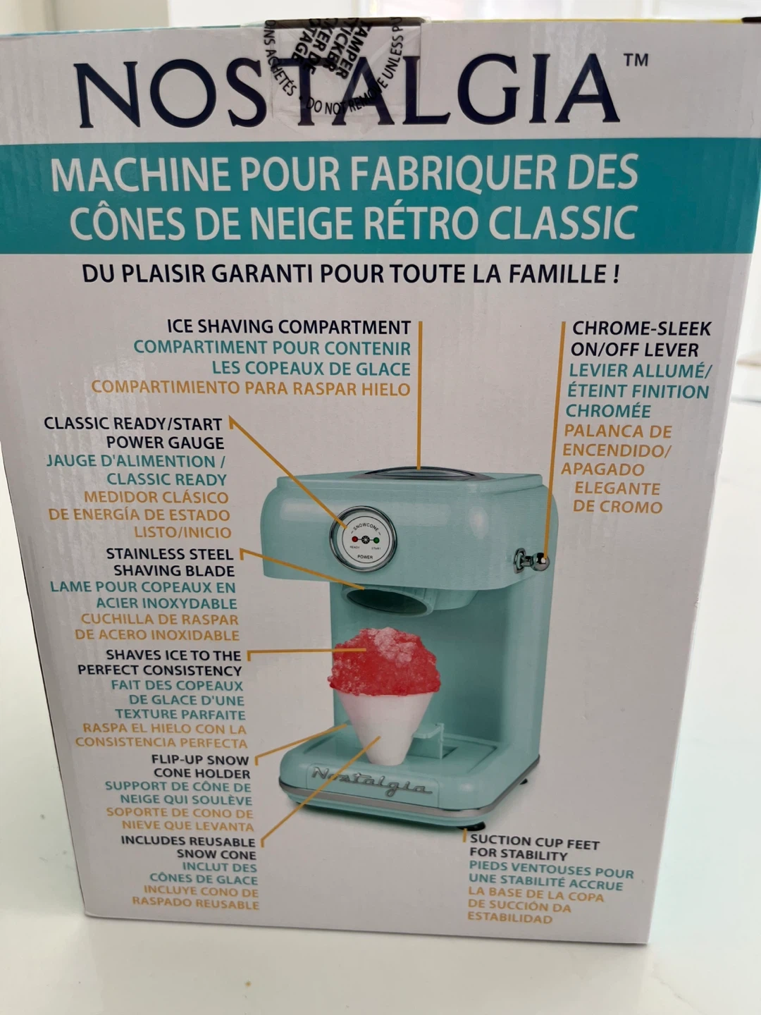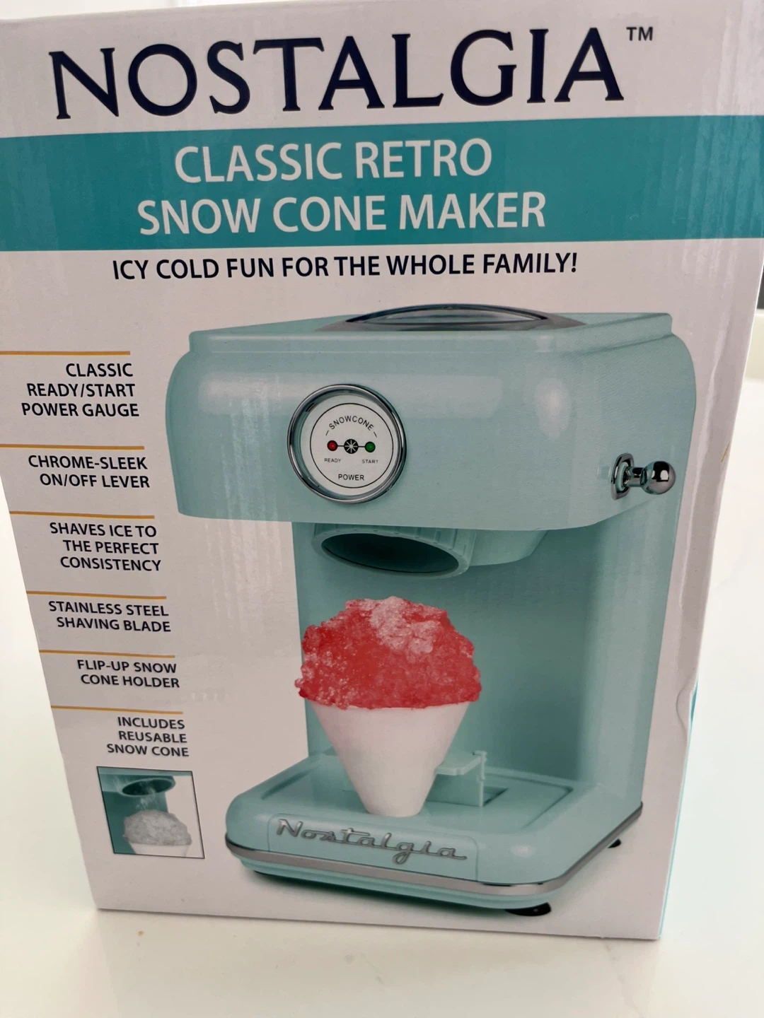 31Get ready for some icy cold fun with this Nostalgia Classic Retro Snow Cone Maker! It features a chrome-sleek on/off lever and a stainless steel shaving blade. It also includes a reusable snow cone and suction cup feet for stability. Perfect for making shaved ice cones with your favorite flavored drinks, juices, or syrups