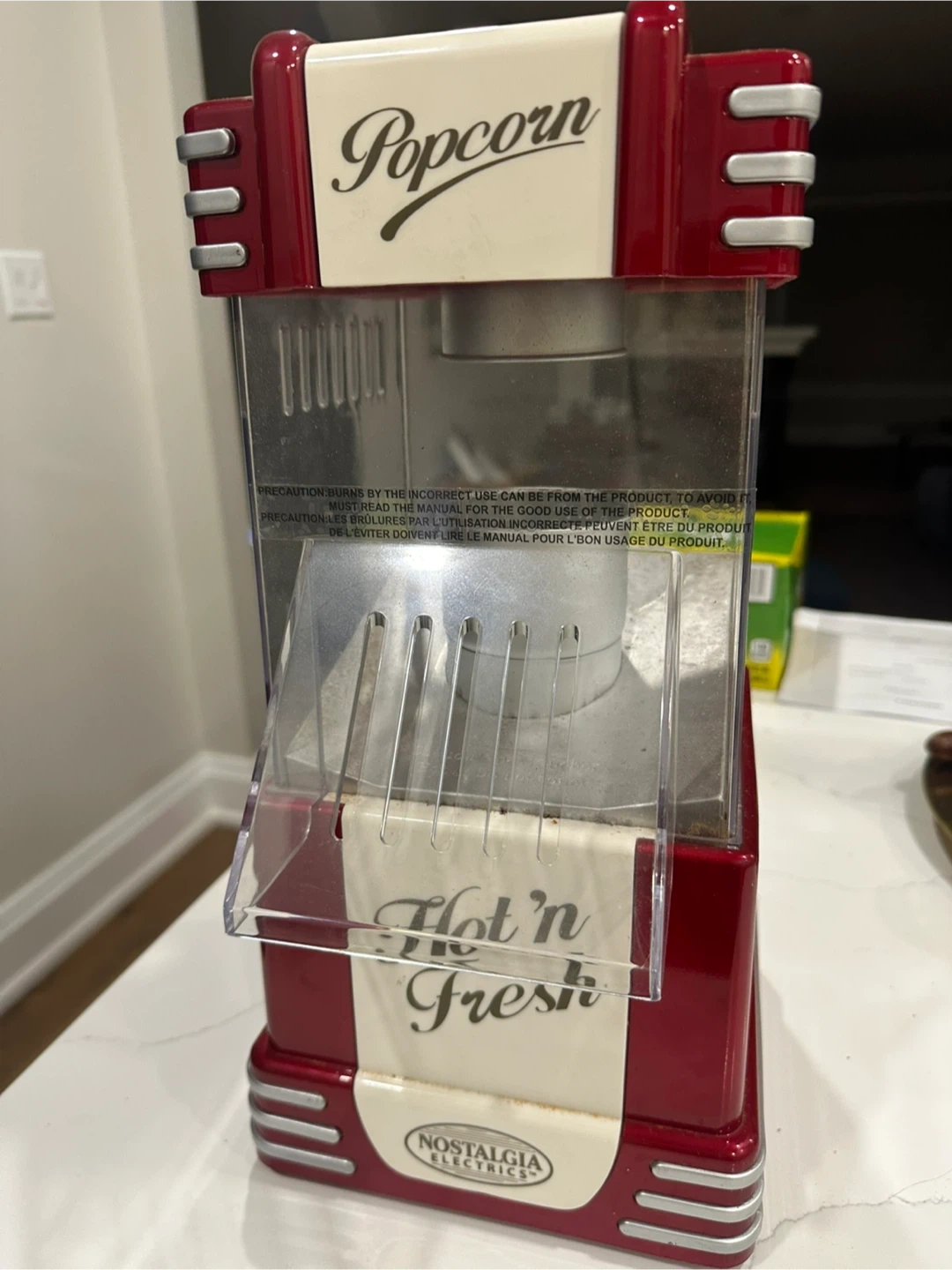 Get ready for movie night with this Nostalgia Electrics Hot 'n Fresh popcorn maker! It's in great shape and ready to make some delicious popcorn. The model number is RHP310. It's a fun and easy way to enjoy a classic snack at home
