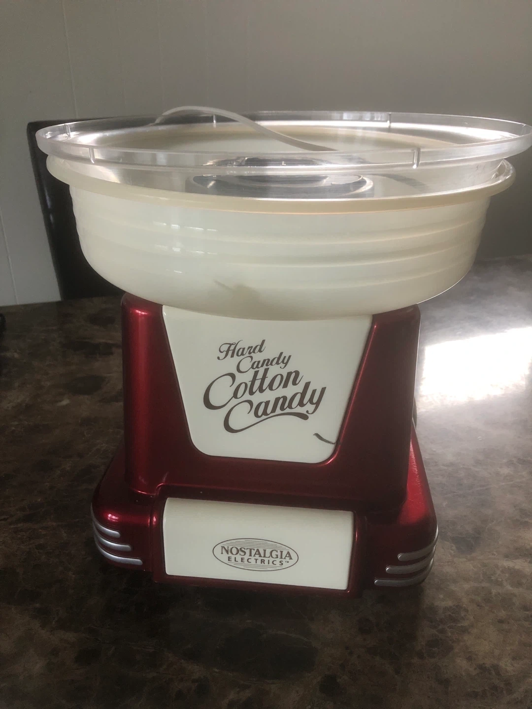 133Get ready to spin some fun with this Nostalgia Electrics hard candy cotton candy maker! It's perfect for turning your favourite hard candies into fluffy cotton candy treats. It's in good condition and ready for its next home. Bring the carnival to your kitchen!