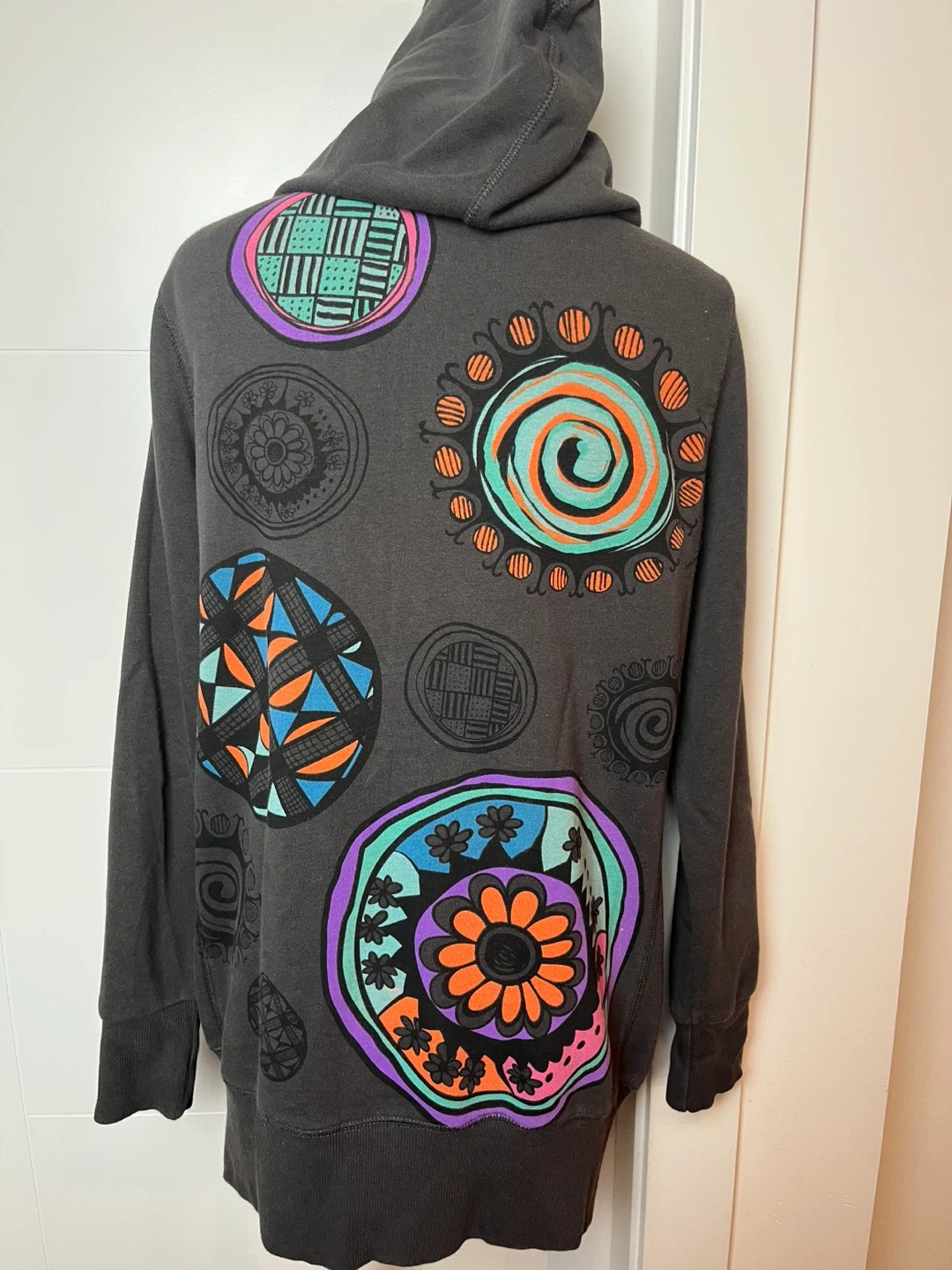 Cozy grey hoodie from Noun featuring colourful graphic designs on the back and front. Perfect for adding a pop of colour to your wardrobe! Pick up at Brow of the Hill near 10th and Royal, New Westminster. Check out my other listings!