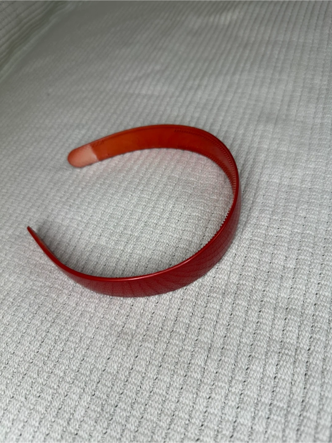 Red solid plastic headband with a glossy finish. The headband is made of a sturdy plastic material and measures approximately 1 inch wide.