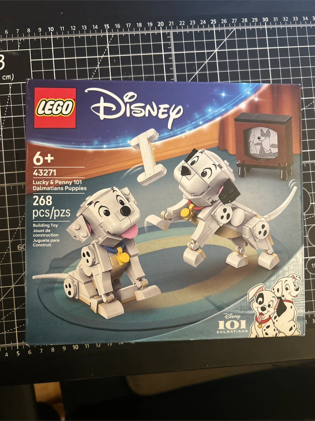 This LEGO Disney set features Lucky & Penny from 101 Dalmatians. It includes 268 pieces for building adorable puppy figures. It's a fun building toy for Disney fans!