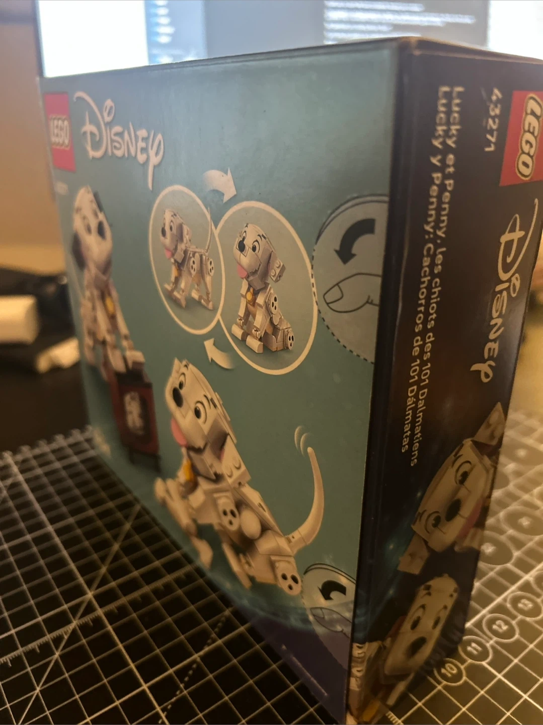 This LEGO Disney set features Lucky & Penny from 101 Dalmatians. It includes 268 pieces for building adorable puppy figures. It's a fun building toy for Disney fans!