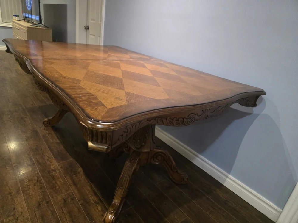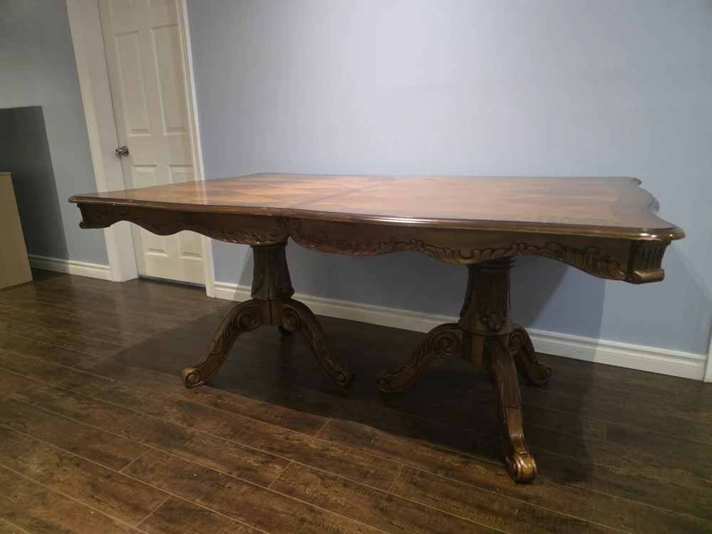 Selling a beautiful, high-quality Traditional Extendable Dining Table (CHAIRS ARE SOLD). This table is perfect for those who already have chairs or need a flexible dining solution for hosting.