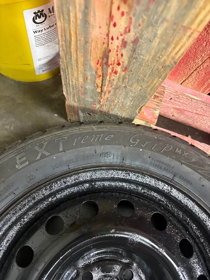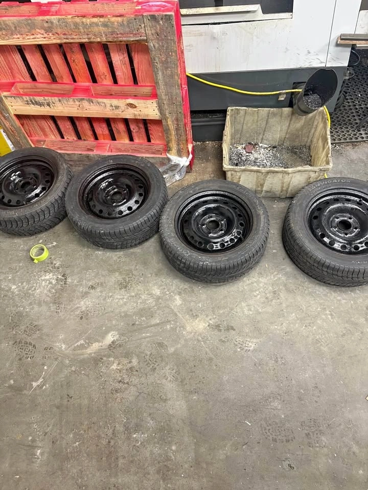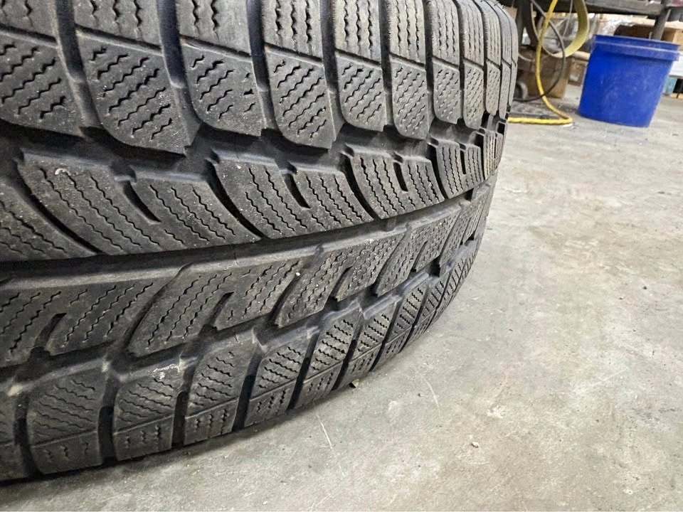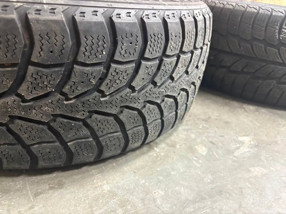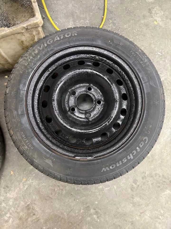 Good used winter tires on steel rims. Around 5–6/32 tread. One tire is a different brand but the same size. Rims have been freshly painted. Ready to bolt on.