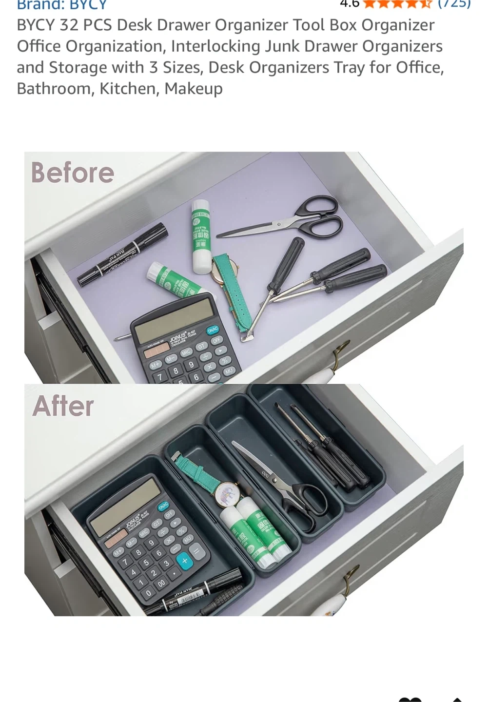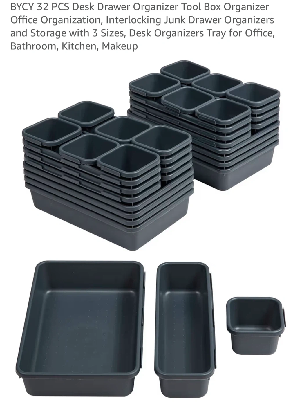 Declutter your space with this BYCY 24-piece desk drawer organizer set! It's perfect for keeping your office, bathroom, kitchen, or makeup area tidy. The set includes interlocking junk drawer organizers in 3 sizes to fit all your needs.