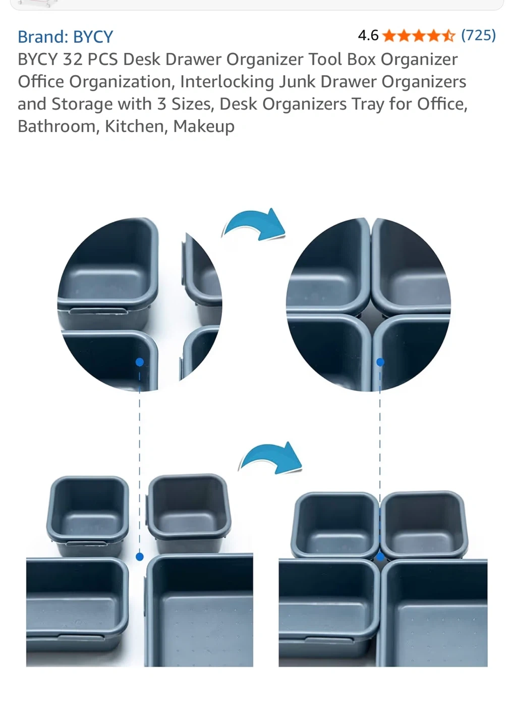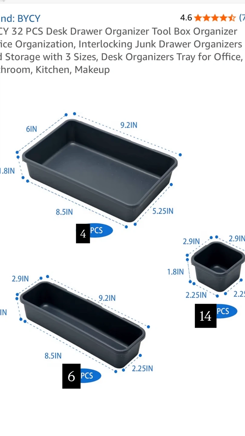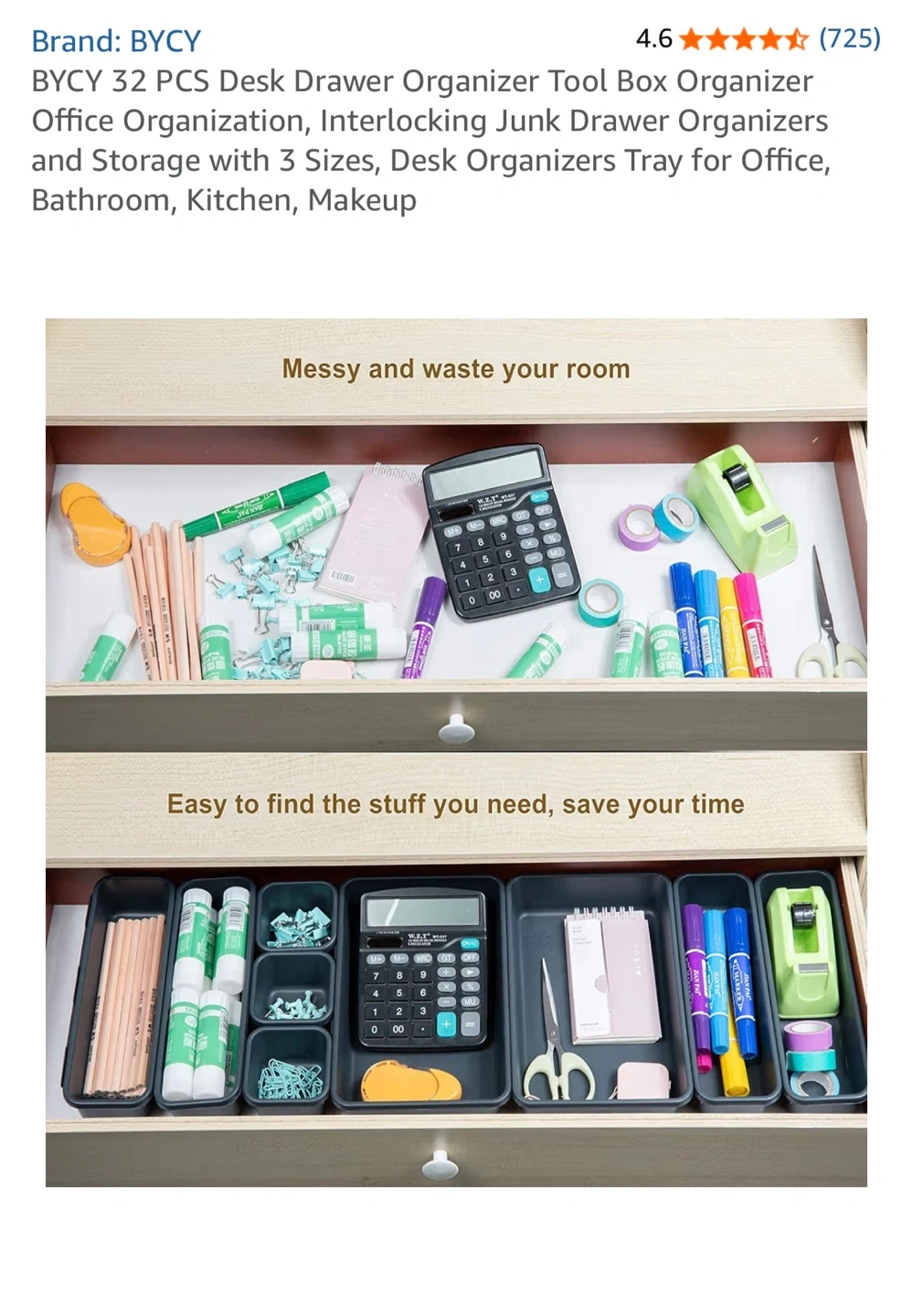 Declutter your space with this BYCY 24-piece desk drawer organizer set! It's perfect for keeping your office, bathroom, kitchen, or makeup area tidy. The set includes interlocking junk drawer organizers in 3 sizes to fit all your needs.