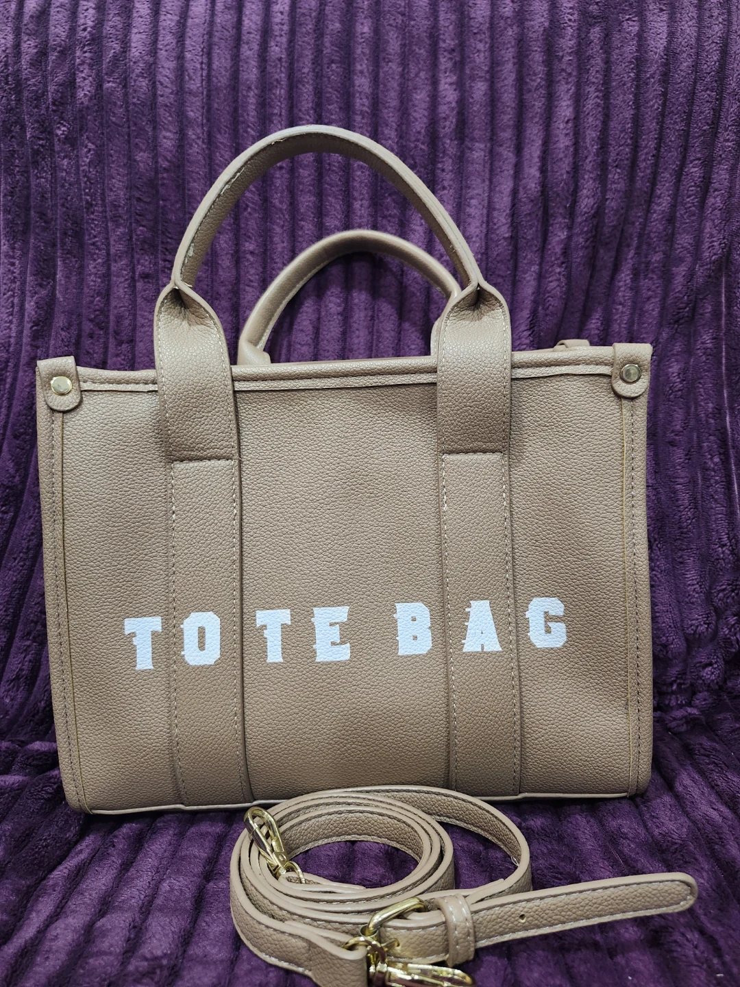 I'm selling a cute beige tote bag! It comes with a handy shoulder strap for easy carrying. The bag is new and ready for a new owner. Perfect for everyday use!