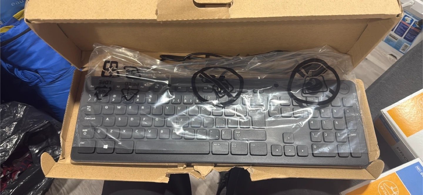 This is a Dell wired keyboard, model KB216. It's a standard black keyboard with a numeric keypad. It comes in its original packaging, ready for use.