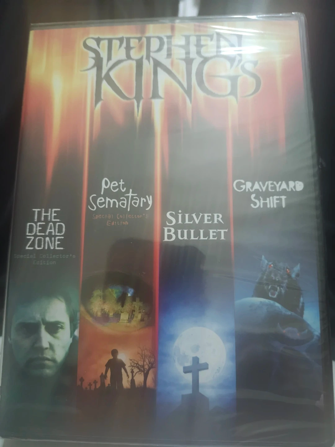 This is a DVD collection of Stephen King movies. It includes 'The Dead Zone' (Special Collector's Edition), 'Pet Sematary' (Special Collector's Edition), 'Silver Bullet', and 'Graveyard Shift'. These are classic horror films based on his novels.