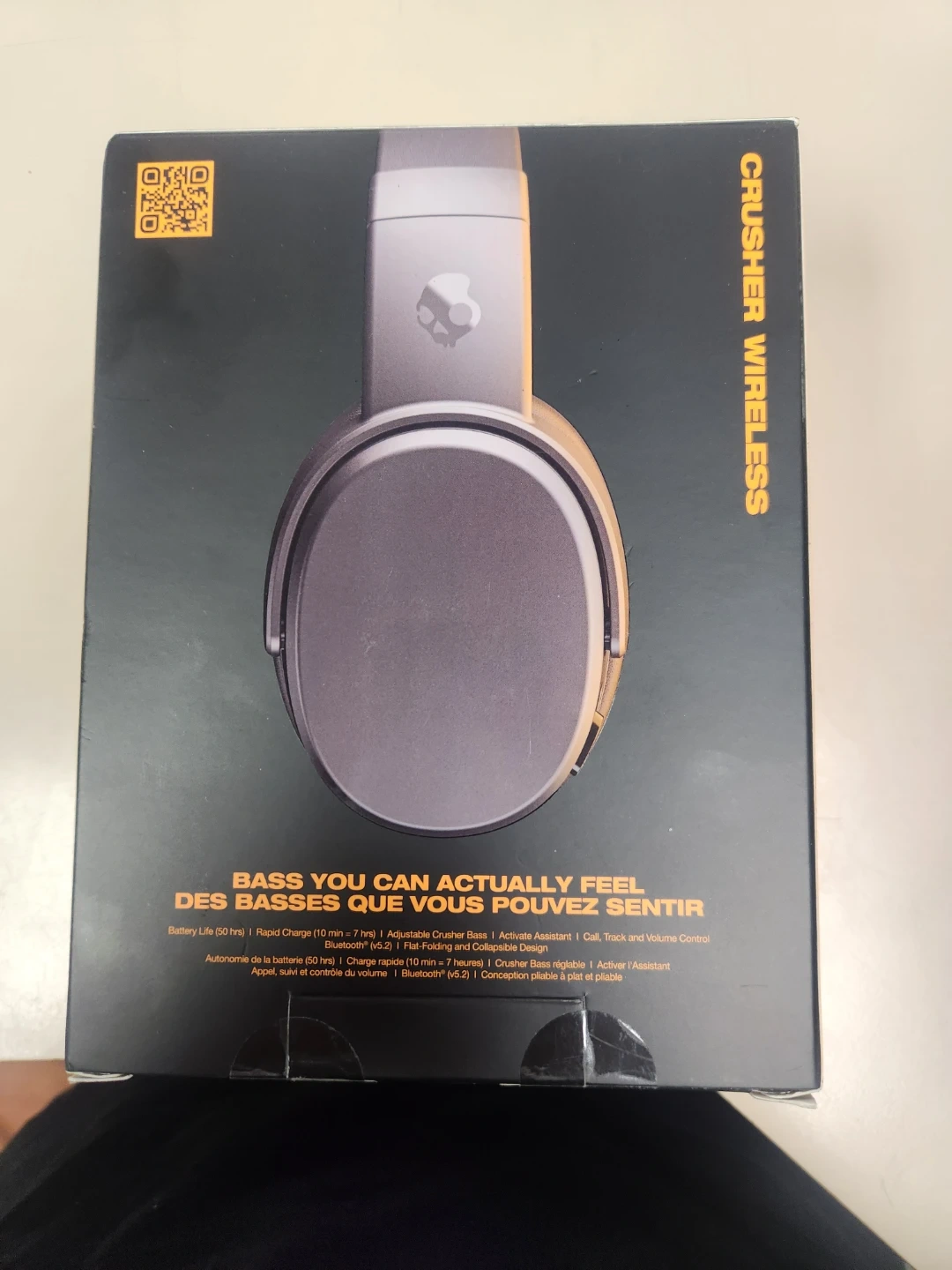 Selling a brand new pair of Skullcandy Crusher Wireless headphones. The box highlights the awesome bass you can actually feel! These headphones have a battery life of 50 hours and feature rapid charge. Control music and calls with ease. The box is included