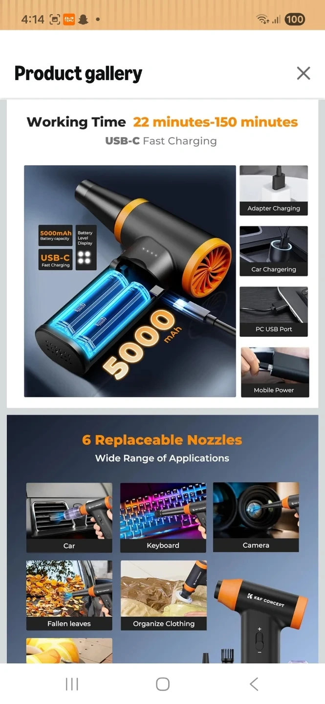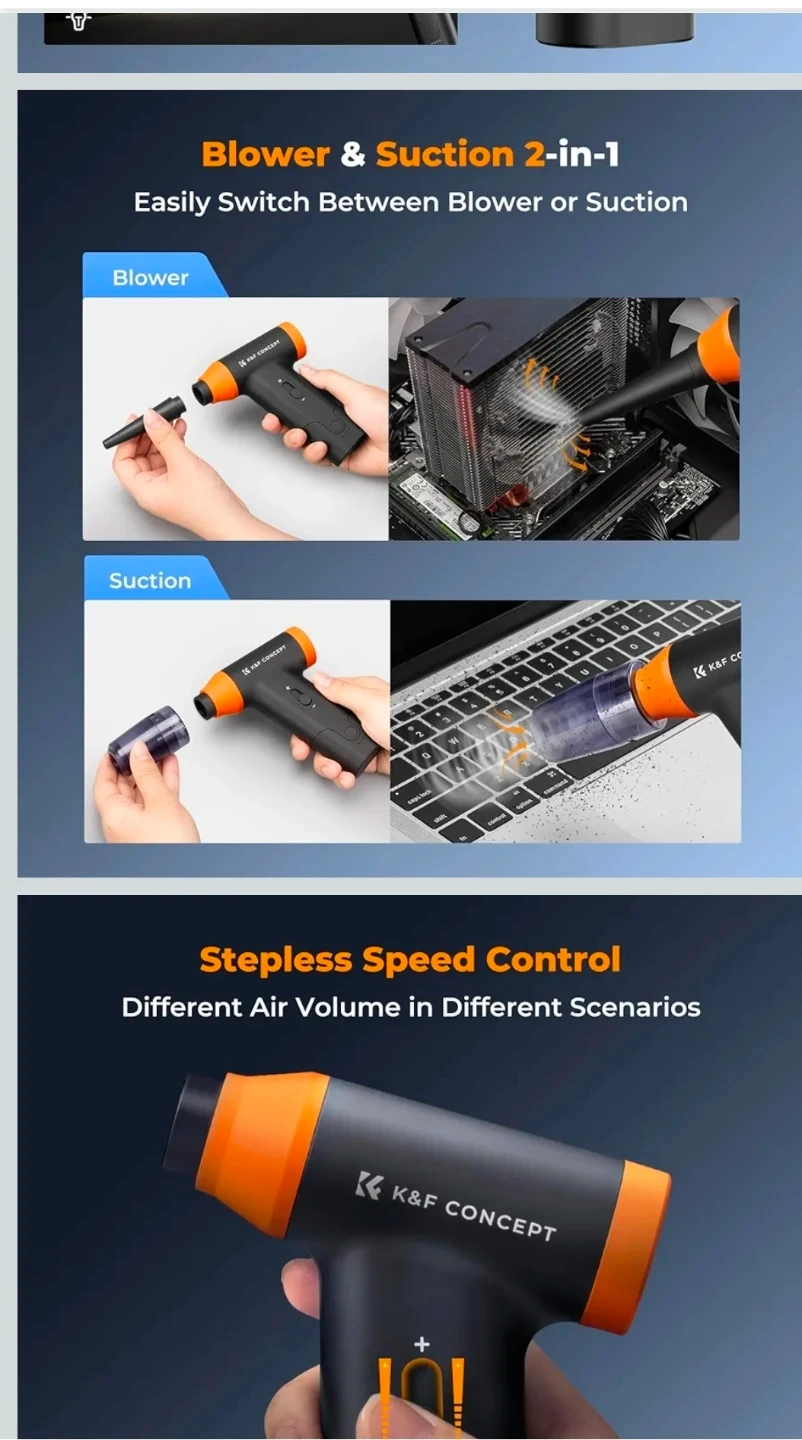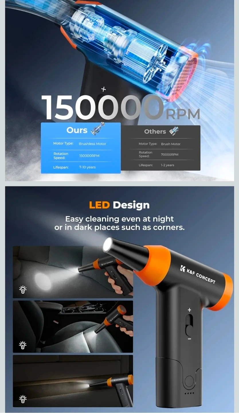 New K&F CONCEPT 2-in-1 Compressed Air Duster with LED Light