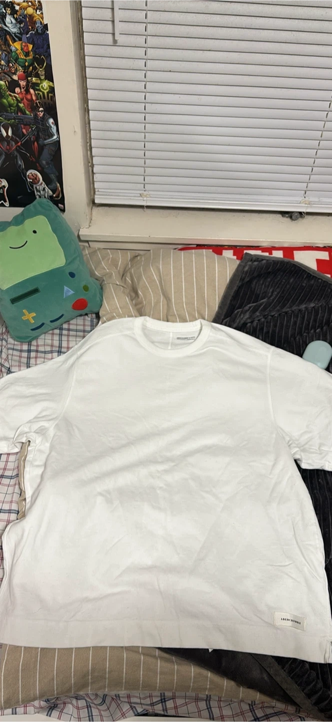 Classic white t-shirt from Abercrombie & Fitch. It's made of soft cotton for everyday wear. Simple and versatile.
