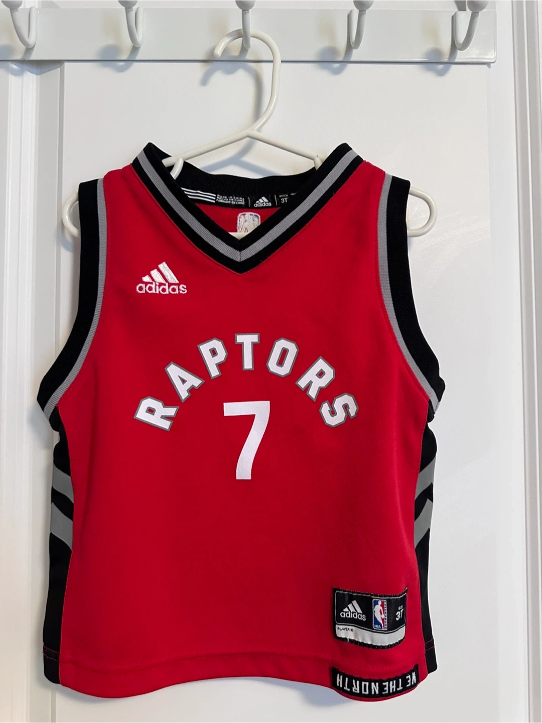 Kids' Toronto Raptors jersey featuring Lowry #7. Made by Adidas with "We The North" branding. Size is 3T.