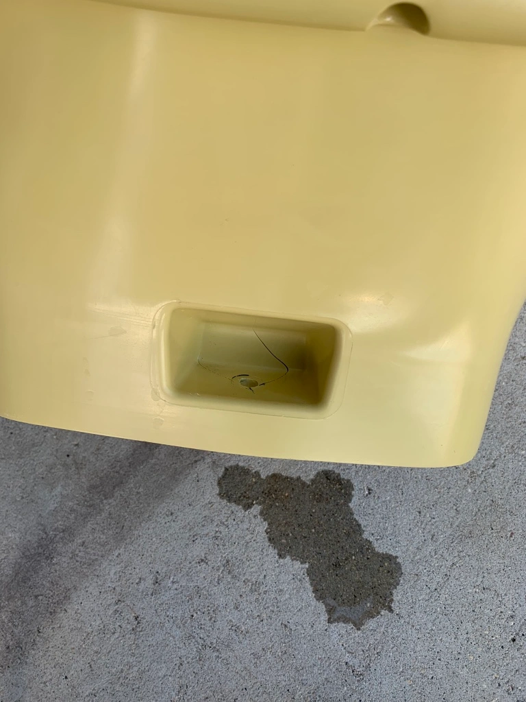AQUA MAGIC III TOILET. 11 1/2” high. Tested before removed. MINOR CRACK AT MOUNTING BOLT , easy to epoxy , SEE PIC. Have video. $75.