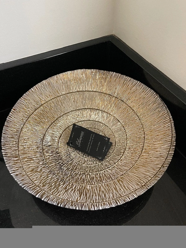 This is a handmade bowl from Istanbul, Turkey using glass and 99% silver—it really sparkles in the light. It’s new with the original tag. Measures about 30.5 cm in diameter and 7 cm tall. Asking $50 or best offer. Pickup at Davisville station.