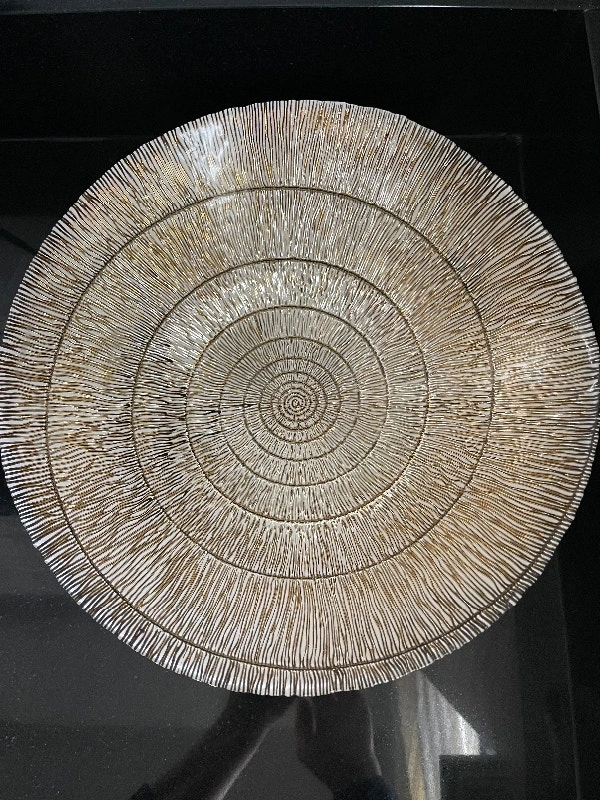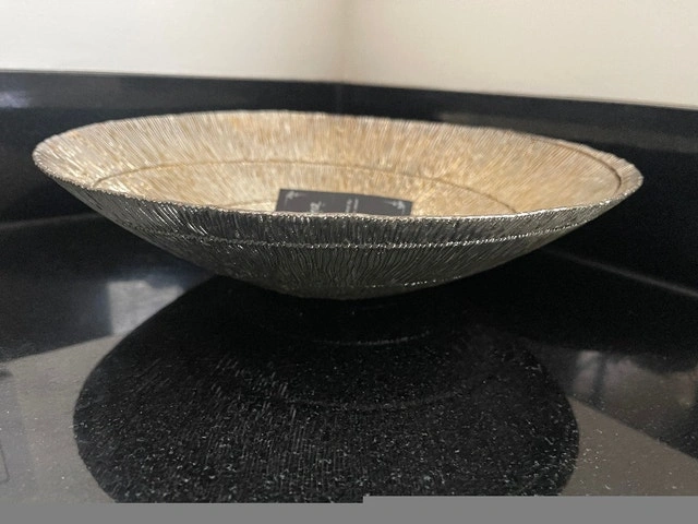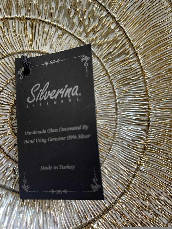 This is a handmade bowl from Istanbul, Turkey using glass and 99% silver—it really sparkles in the light. It’s new with the original tag. Measures about 30.5 cm in diameter and 7 cm tall. Asking $50 or best offer. Pickup at Davisville station.