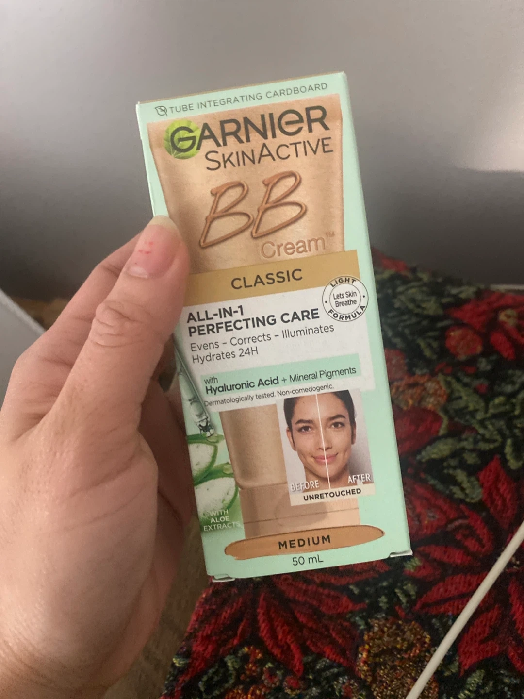 Garnier SkinActive BB Cream in Classic shade. This all-in-1 perfecting care evens, corrects, and illuminates. It hydrates for 24 hours with Hyaluronic Acid and Mineral Pigments. 50 mL tube. Pick up cash only