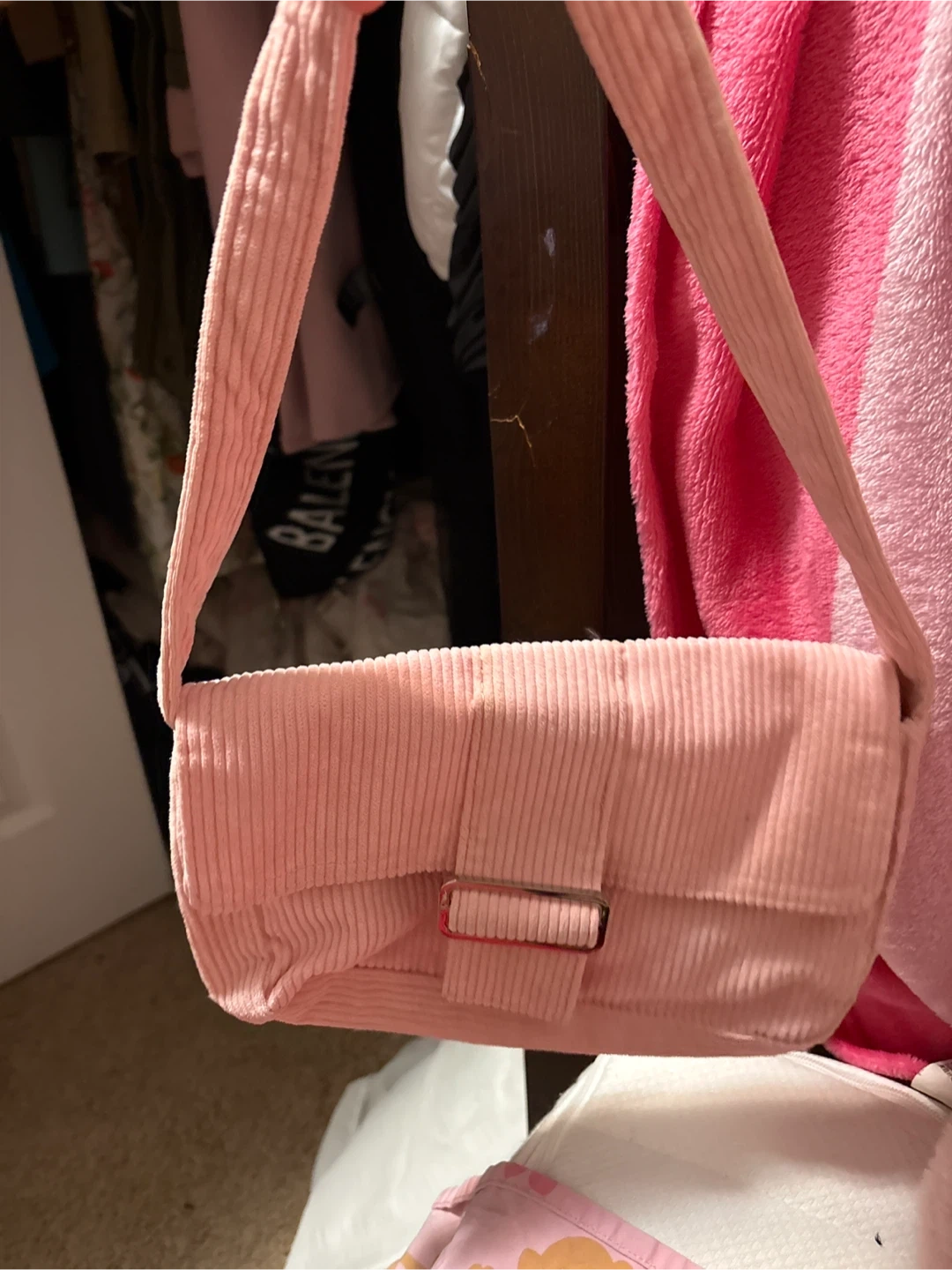 Cute pink corduroy shoulder bag! It's in good condition and ready for a new owner. Perfect for adding a touch of retro flair to your outfit!