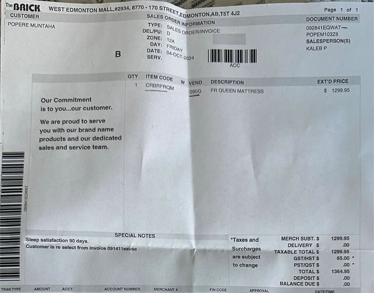 FR Queen Mattress from The Brick
