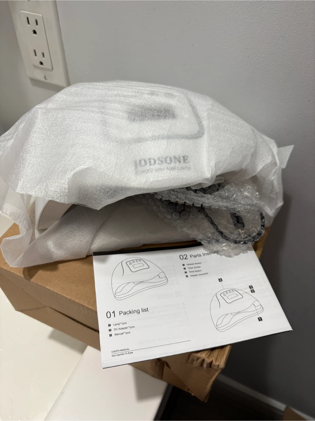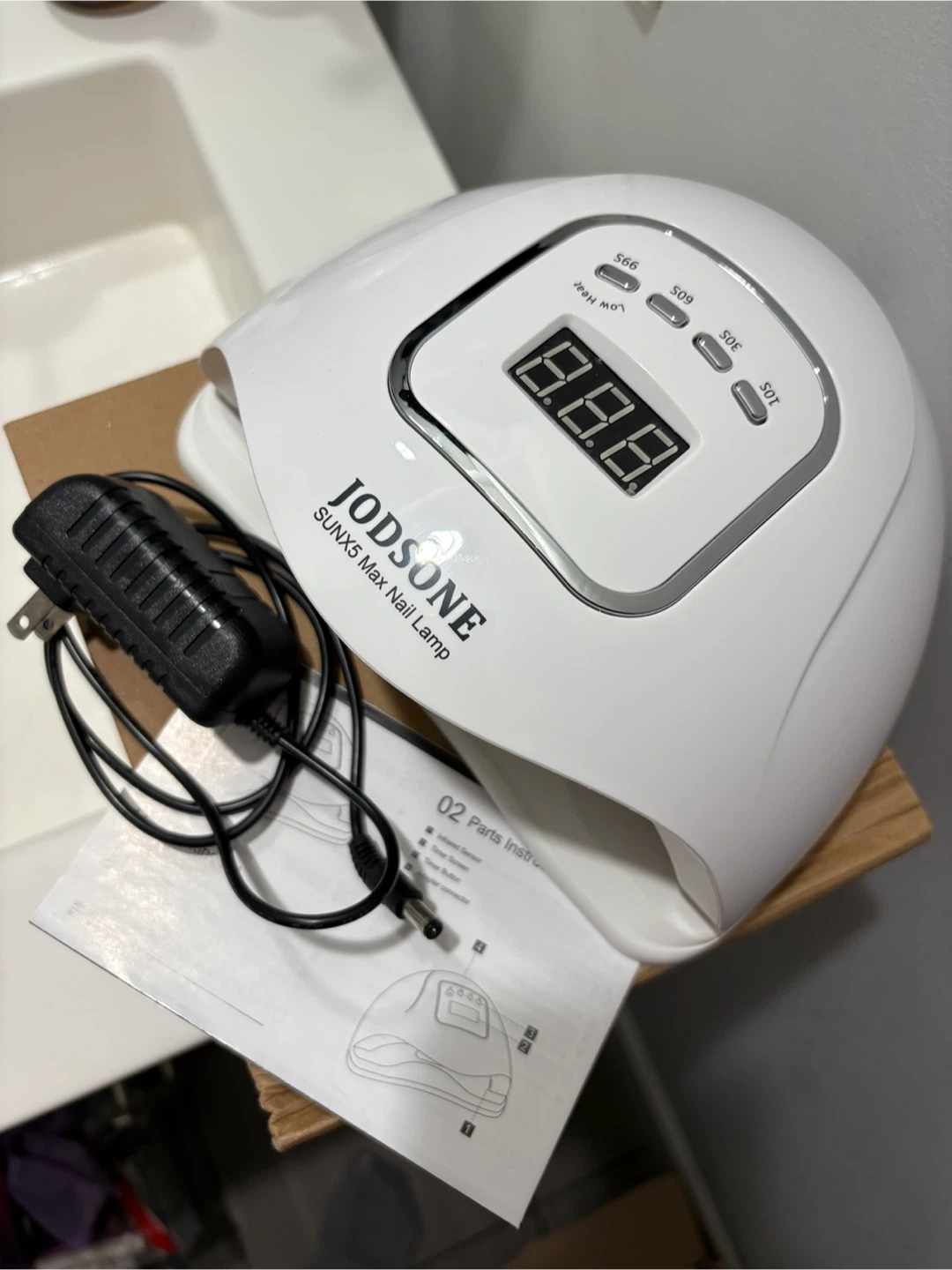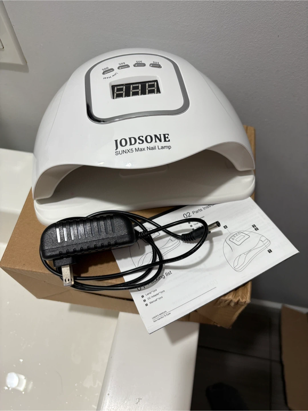 Selling a JODSONE SUNX5 Max Nail Lamp in excellent condition! It comes with the original box, DC adapter, and manual. Perfect for at-home manicures and pedicures!