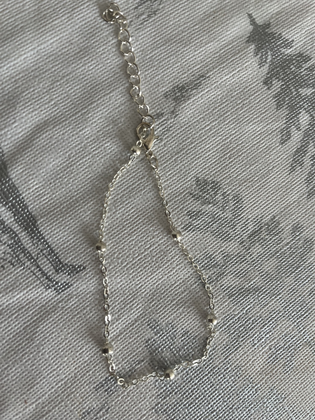 1 / 11 / 1Buy & SellDainty Silver Beaded AnkletDainty Silver Beaded AnkletFreeSilver-toned anklet. Features small beads along delicate chain. Lobster clasp closure.ConditionNewSizeMedWHERE TO MEETCheck LocationView MapSELLERverifiedPatHollydell791 review1 chats·0 favorites·5 viewsSEND CHAT TO SELLERHi Pat! I’m interested in your listing.Hi Pat! I’m interested in your listing.Get the Karrot app to chatSign In to chat