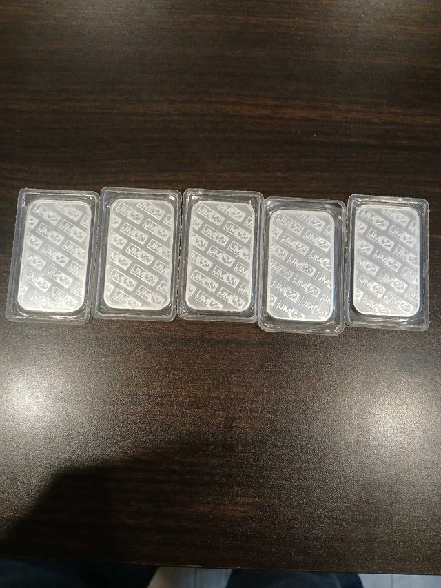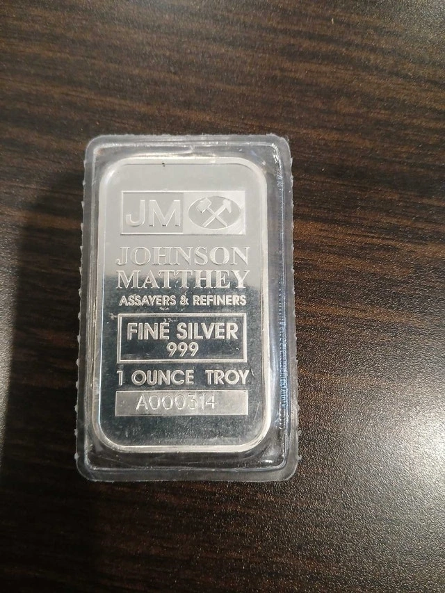 I'm offering five 1 ounce Johnson Matthey fine silver .999 bars. These bars are a great way to invest in precious metals and add to your collection. Manufacturer: Johnson Matthey, Weight: 1 troy ounce, Purity: .999 Fine Silver. If this ad is still up, yes, they're still available! Cash accepted.